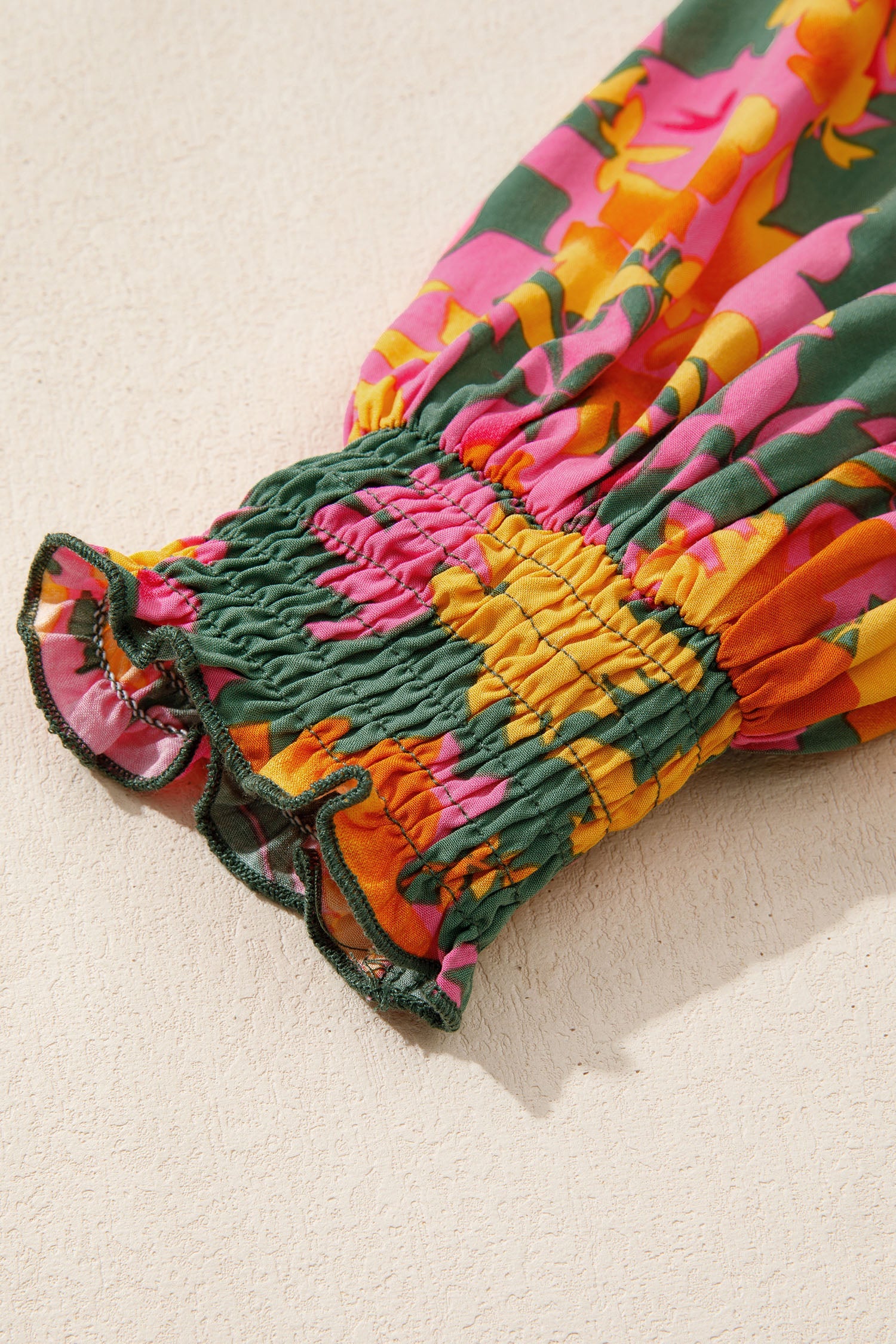 Floral Smocked Ruffle Hem Long Sleeve Mini Dress
