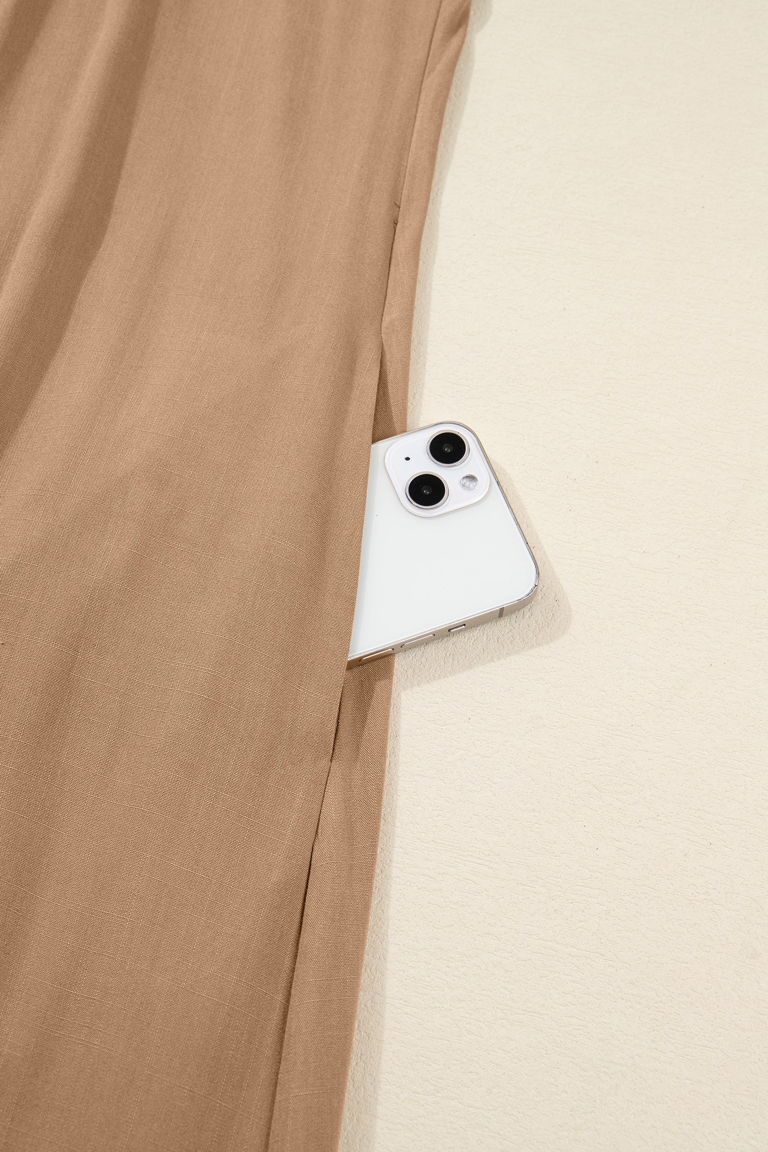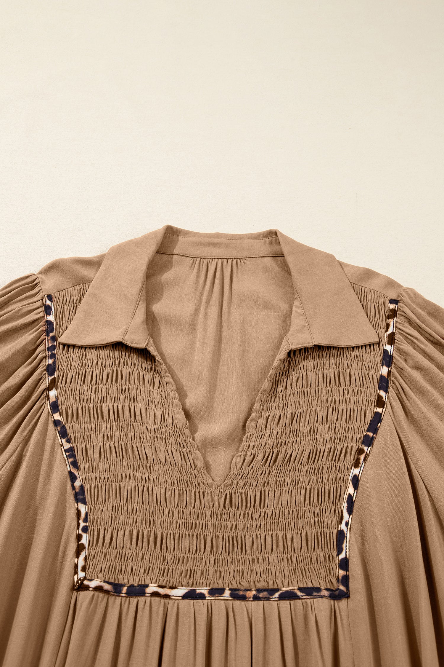 Plus Size Smocked V-Neck Leopard Piping Maxi Dress