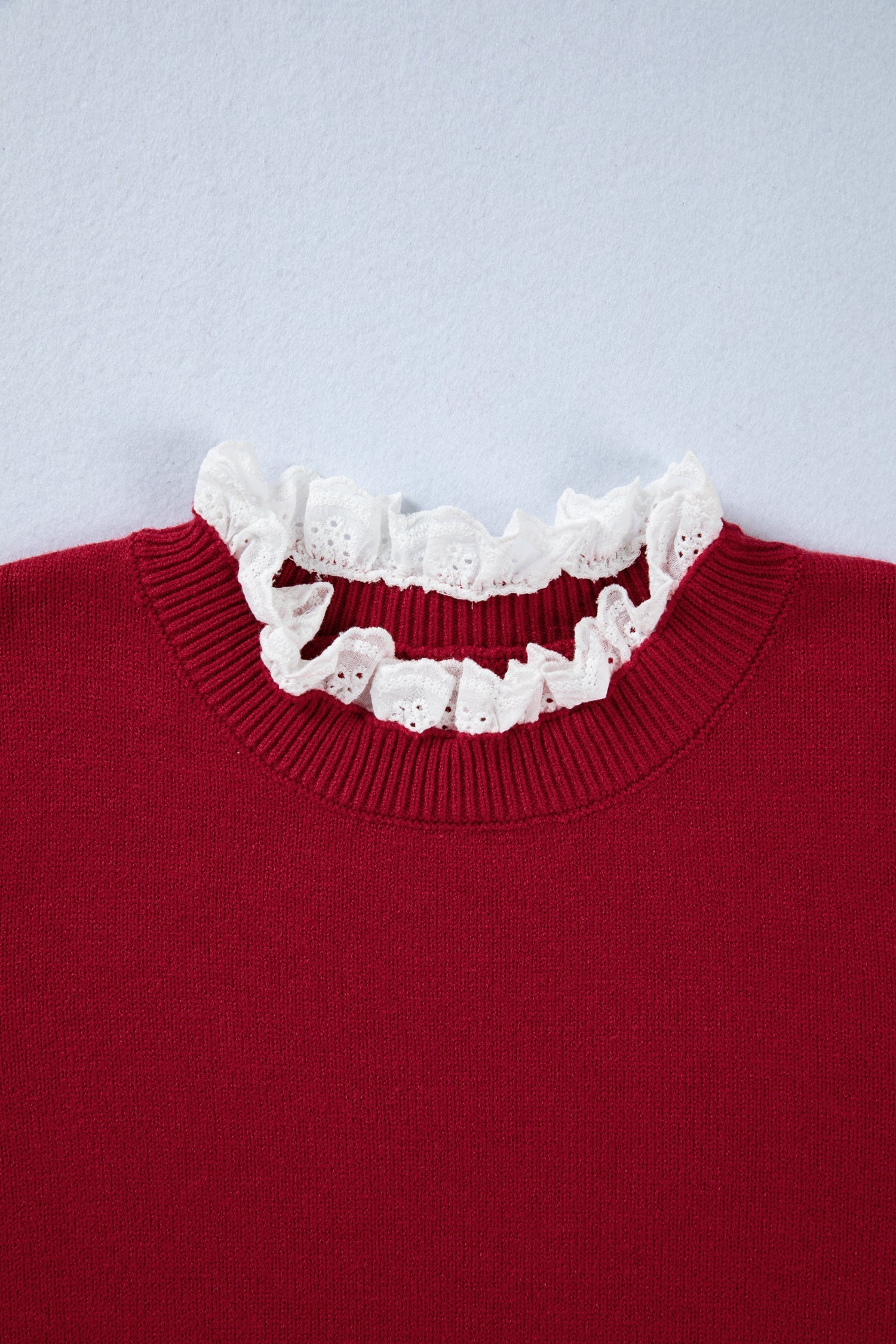 Lace Trim Patchwork Buttoned Cuff Sweater