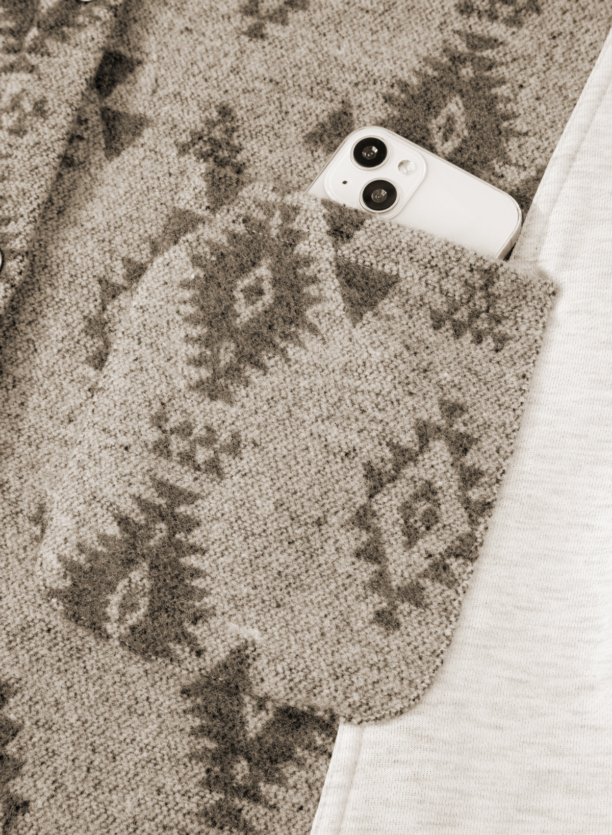 Western Aztec Colorblock Patchwork Drawstring Hooded Shacket
