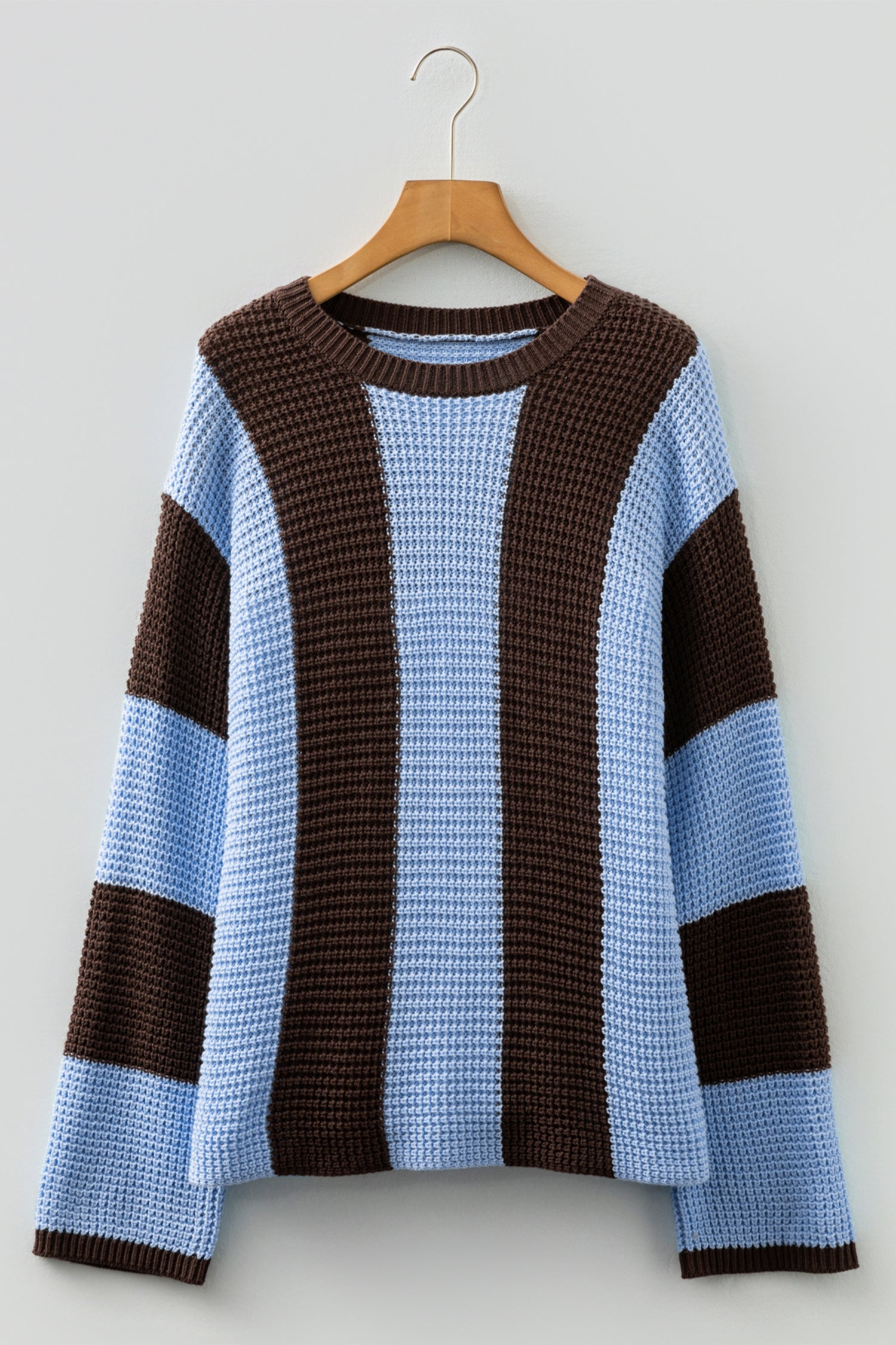 Stripe Colorblock Thermal Textured Knit Drop Shoulder Sweater