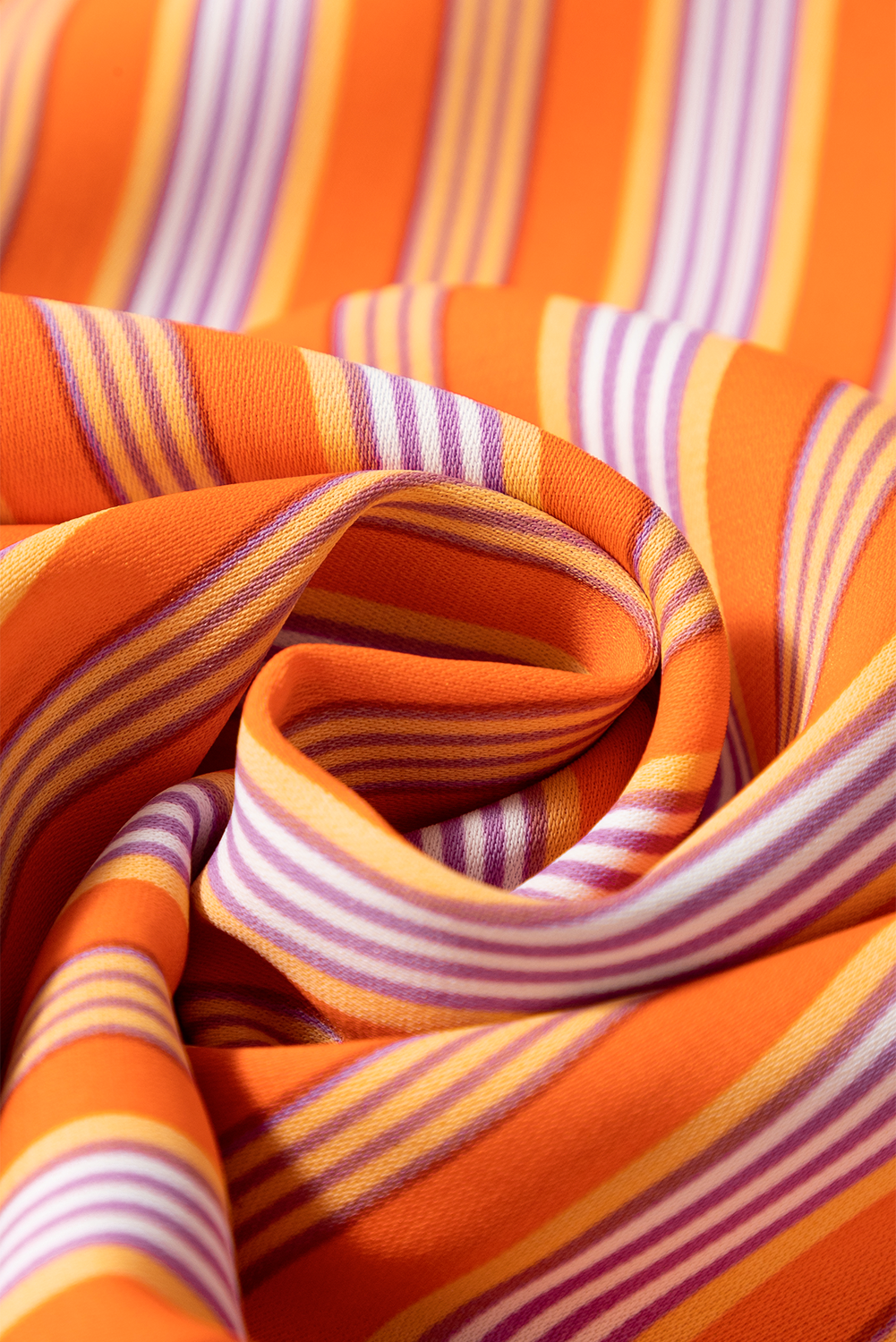 Plus Size Stripe Crinkled Half-Button V-Neck Blouse