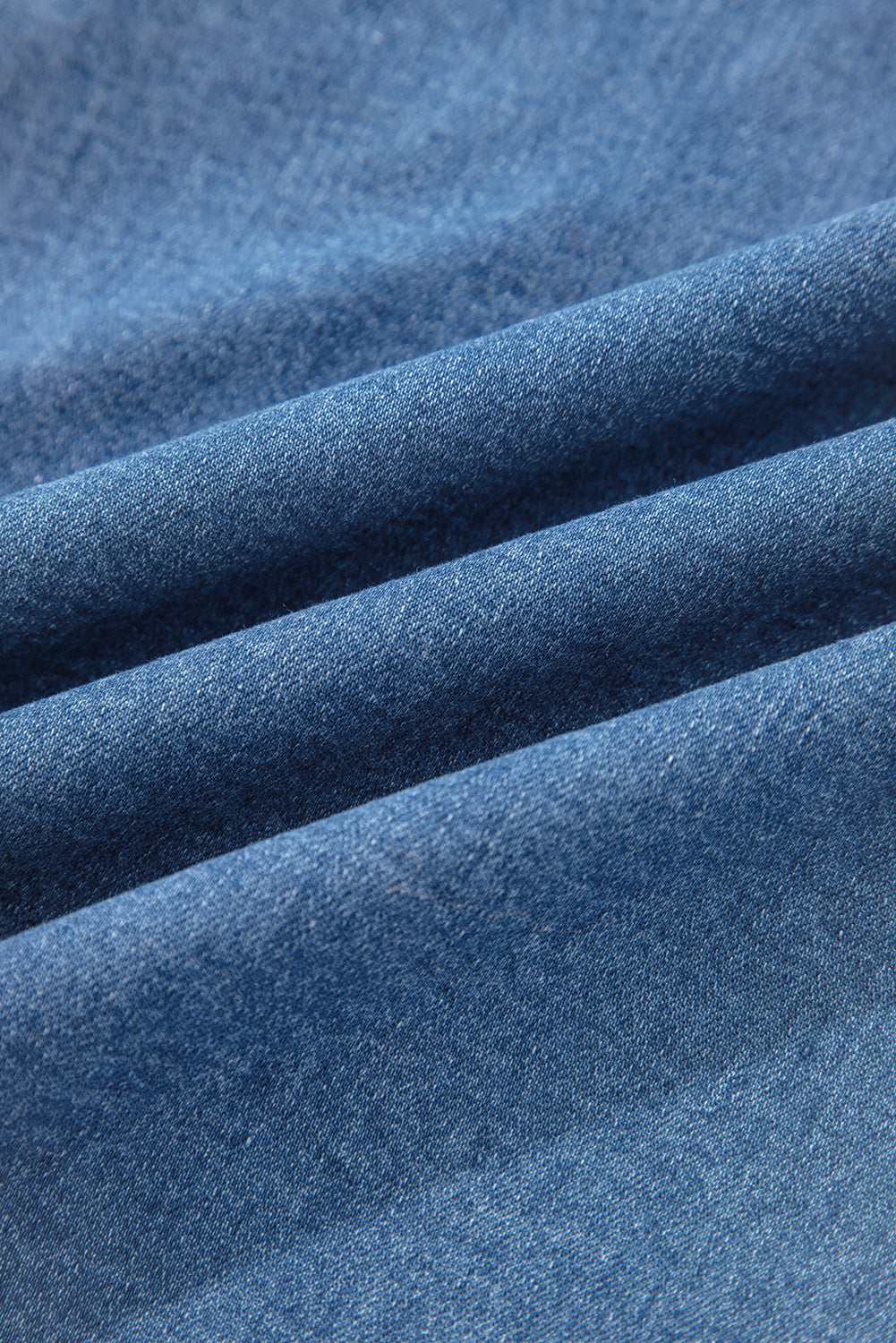 Plus Size Denim Elastic Waist Ruffle Wide Leg Pants