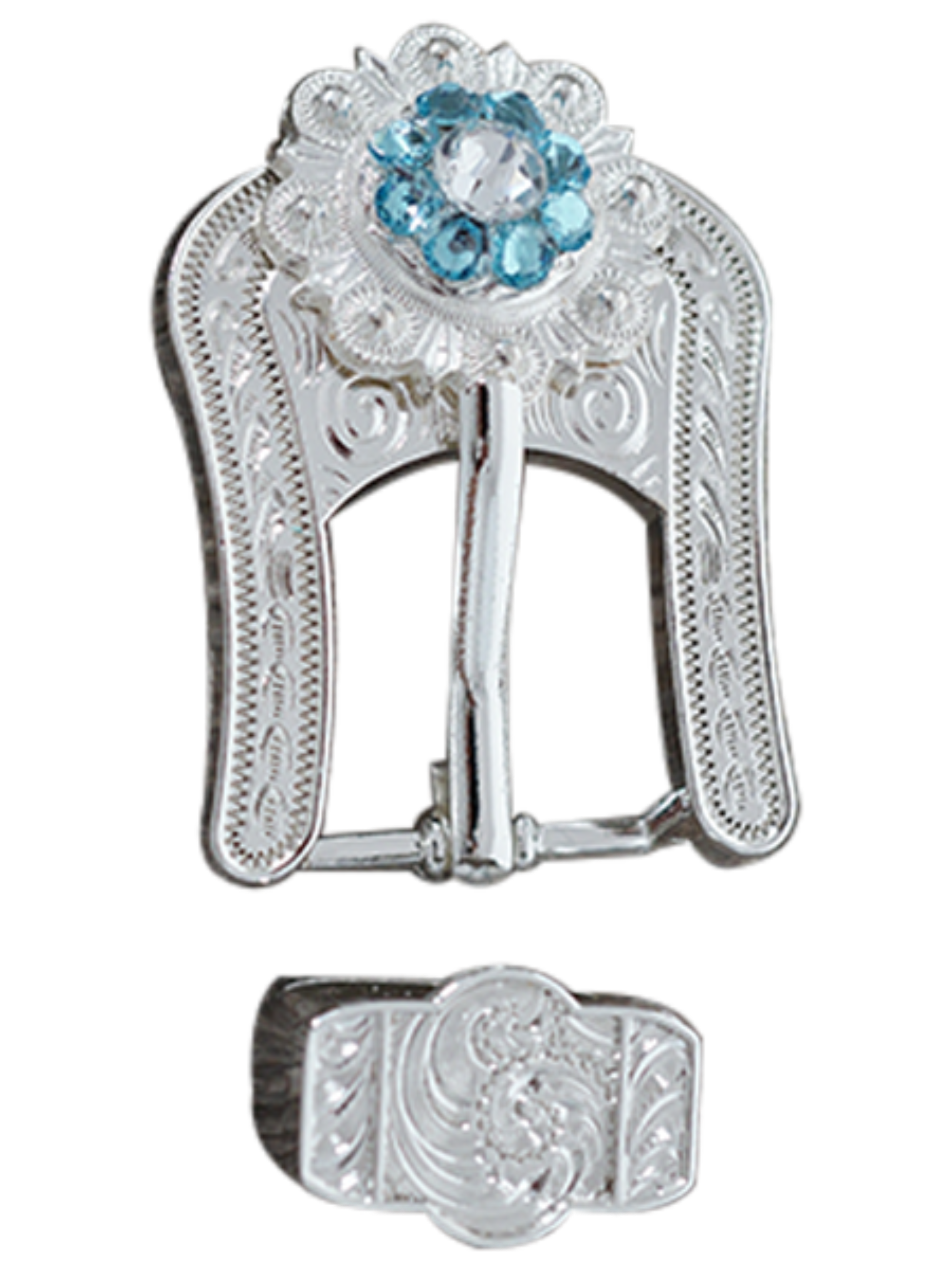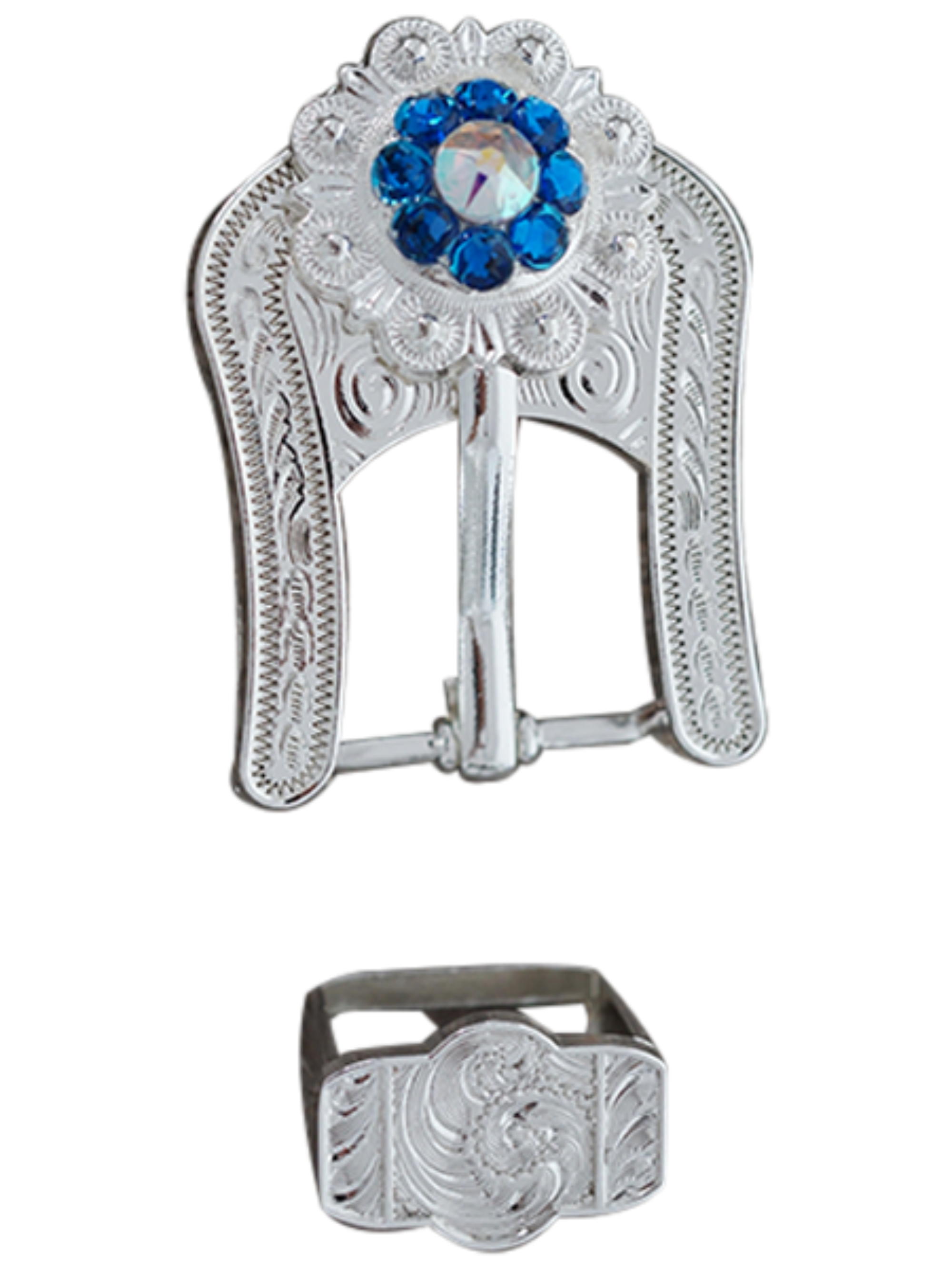 Bright Silver Belt Buckle with Capri & AB European Crystal Concho