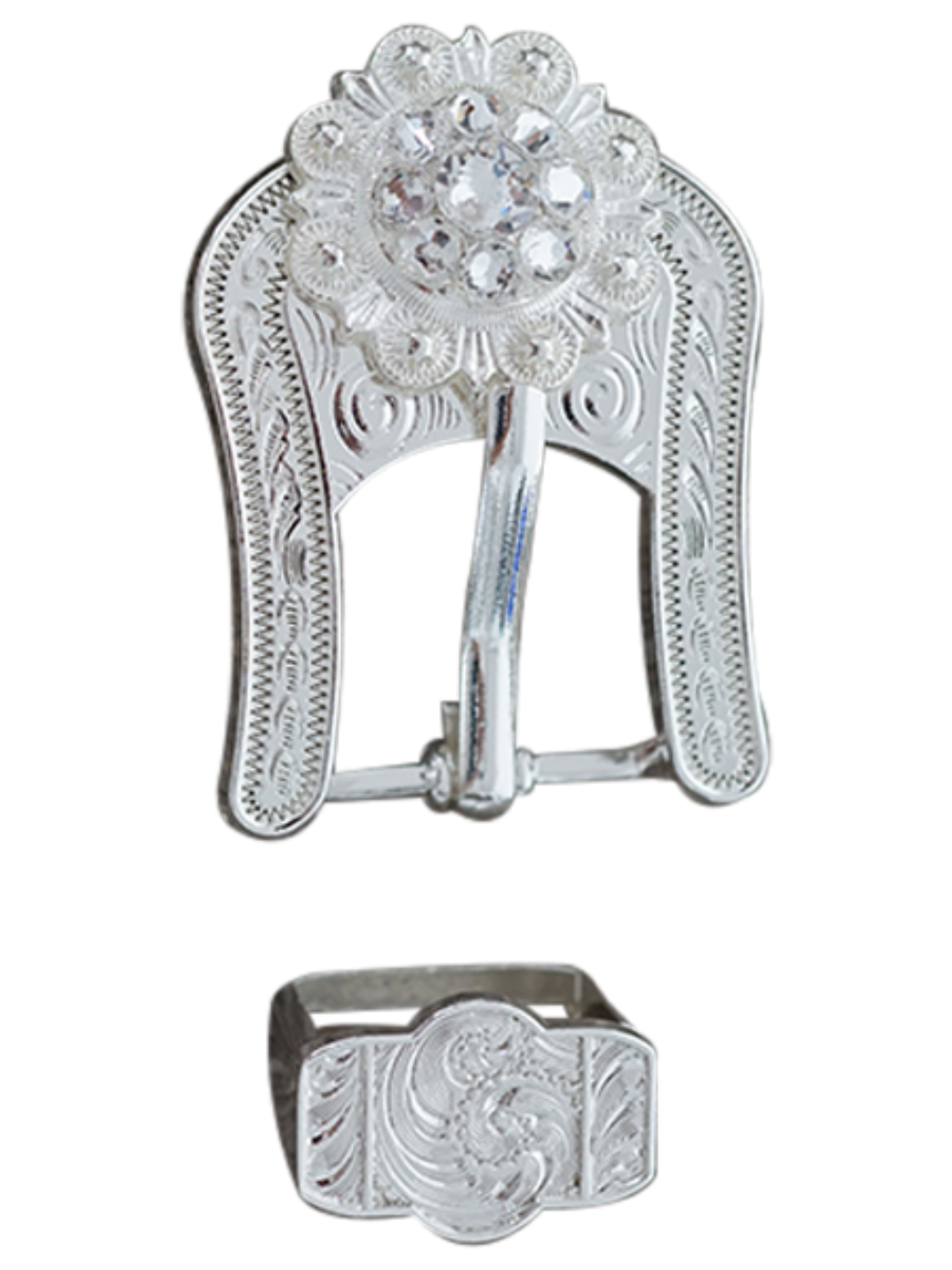 Bright Silver Capri & AB Crystal Conchos - Sizes from 1"- 3" and Buckles