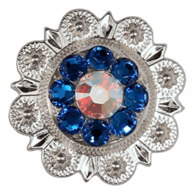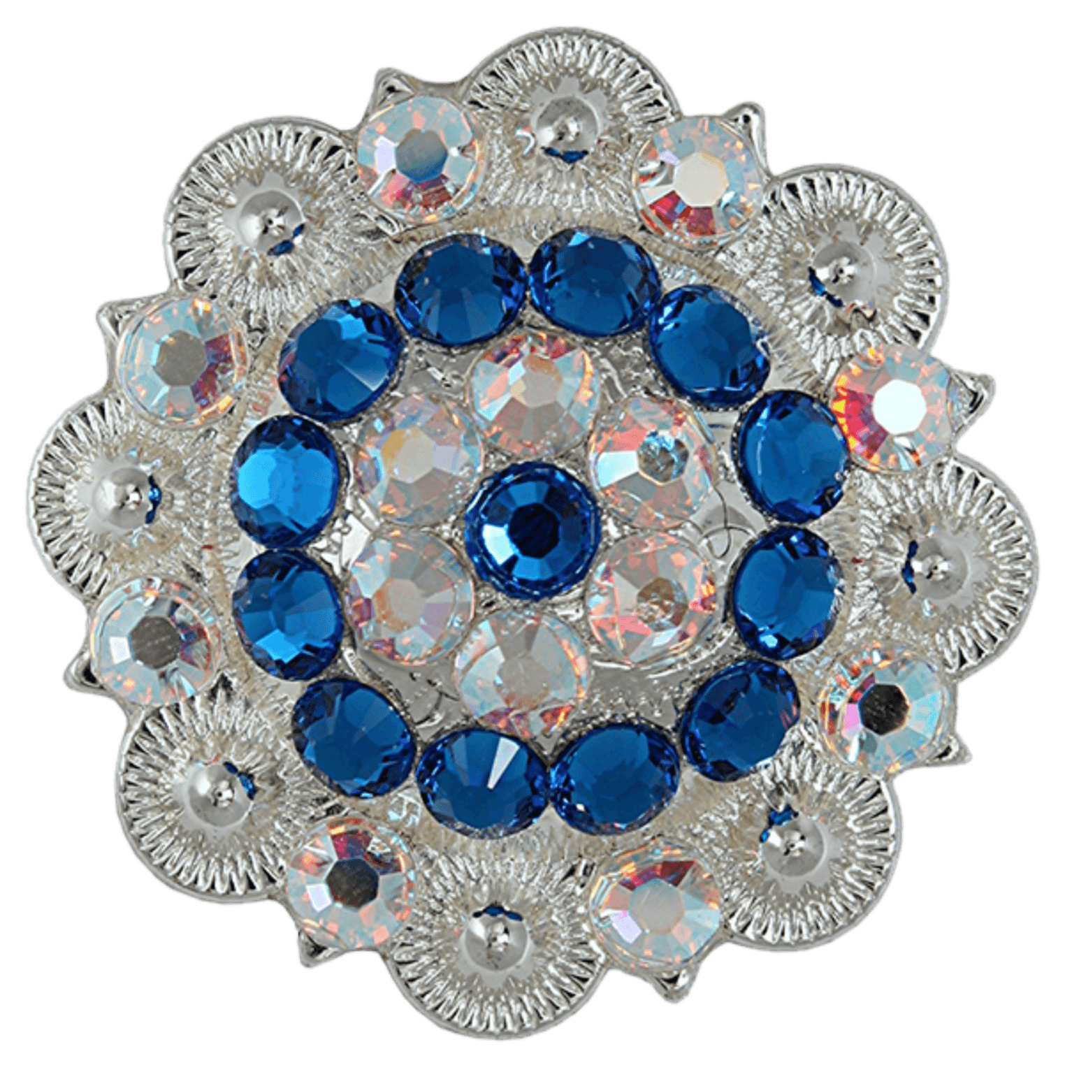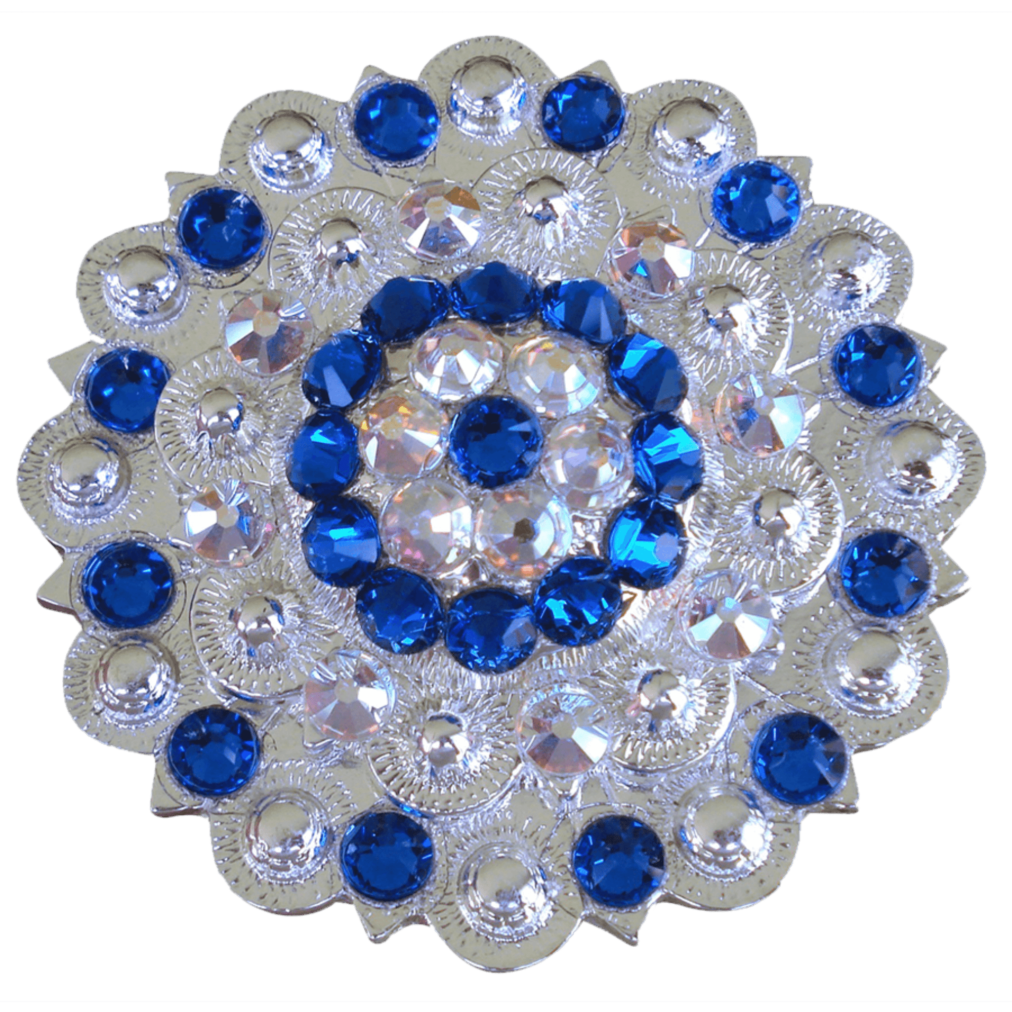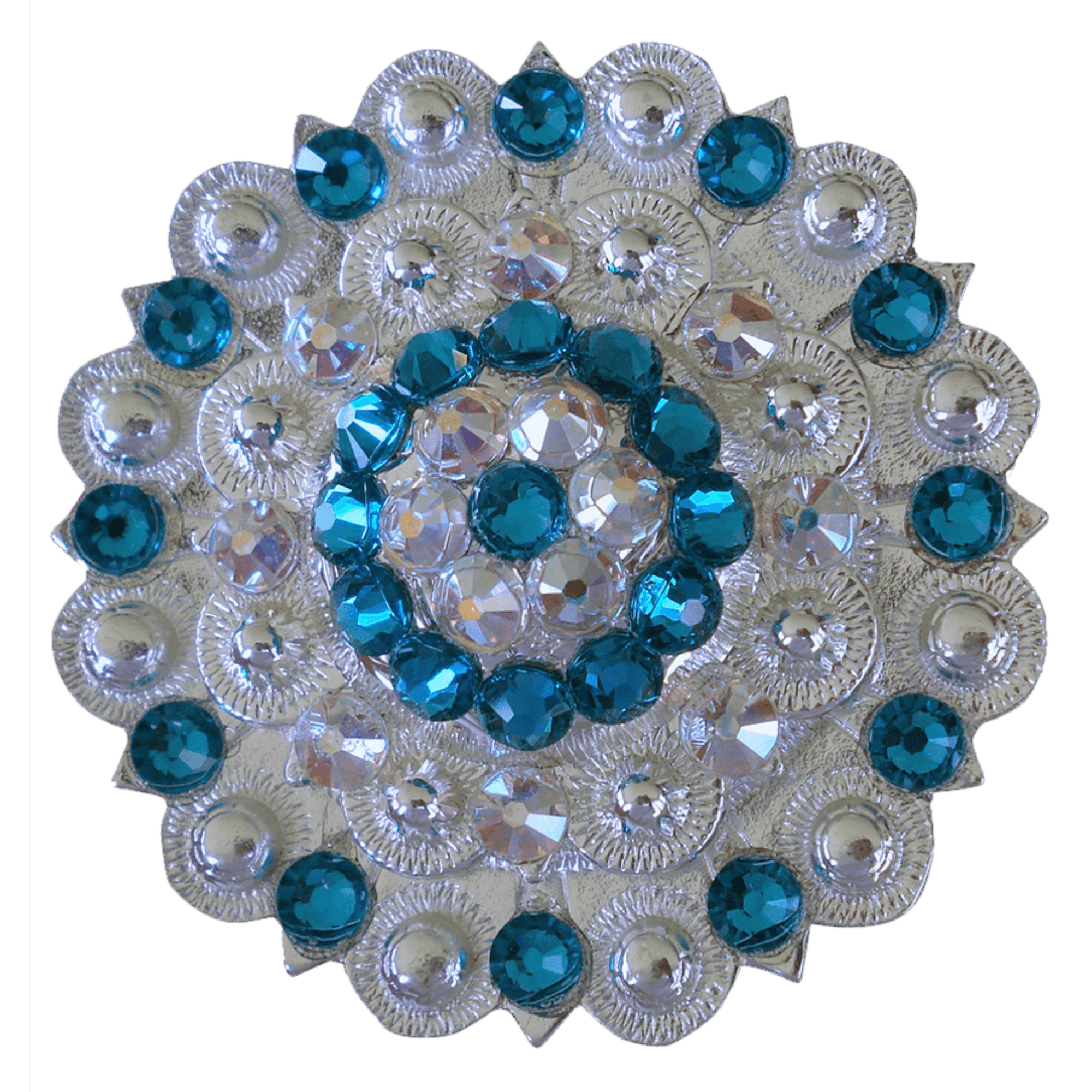 Bright Silver Teal & AB Crystal Conchos - Sizes from 1"- 3" and Buckles