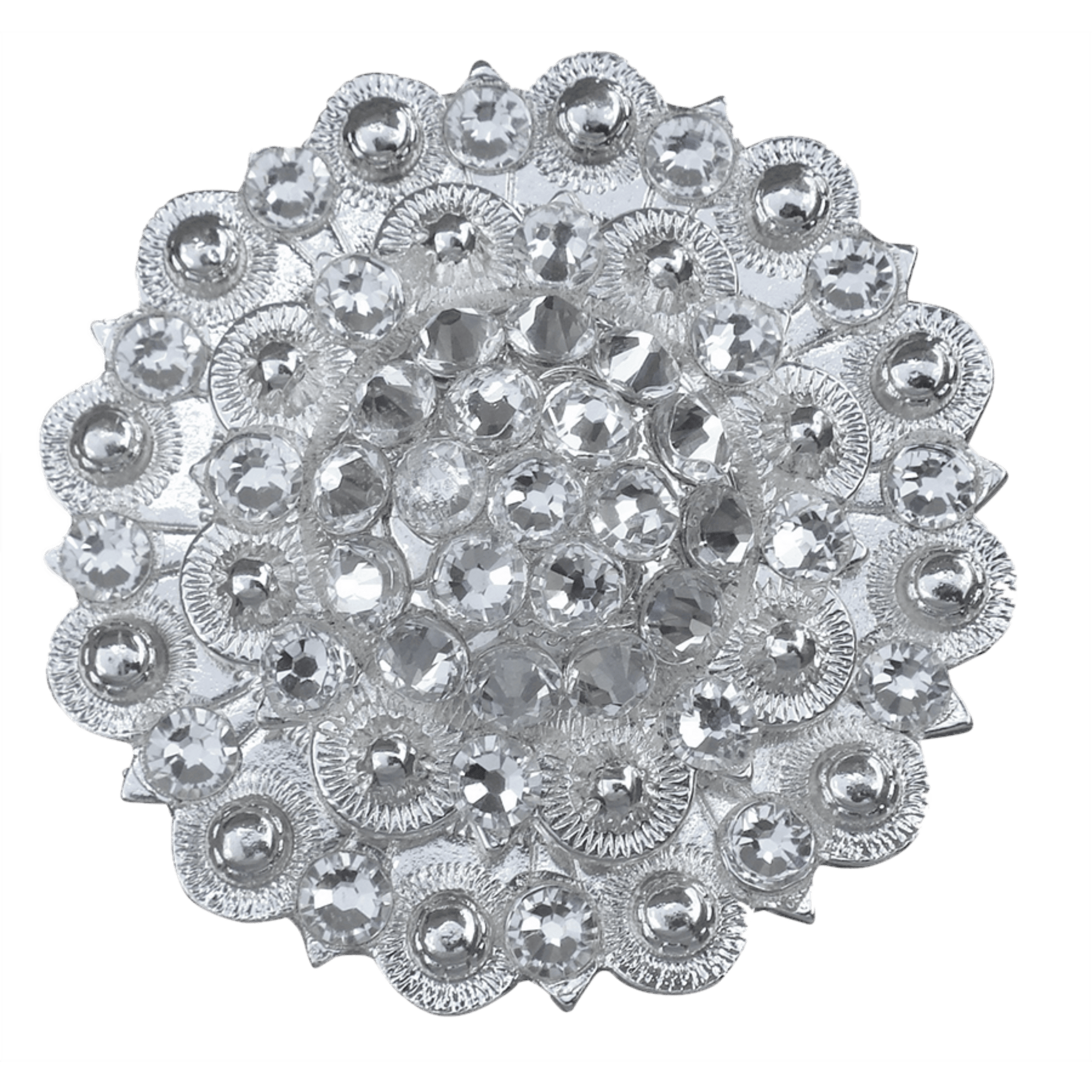 Bright Silver Clear Crystal Conchos - Sizes from 1"- 3" and Buckles