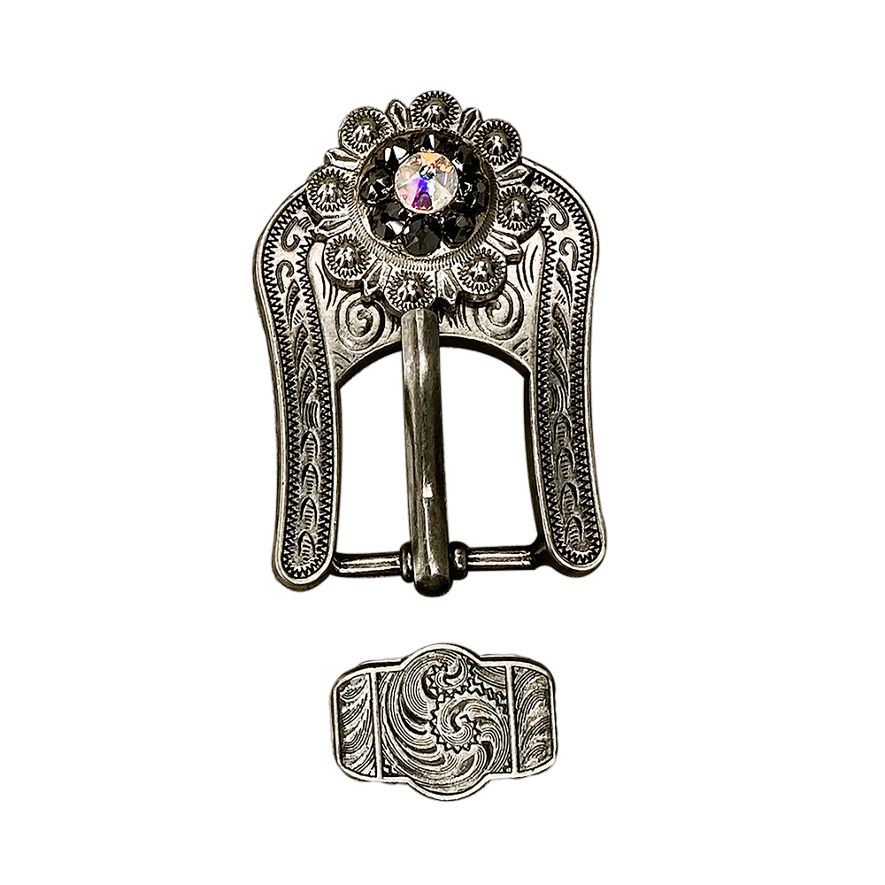 Jet & AB Antique Silver European Crystal Buckle Keeper Set