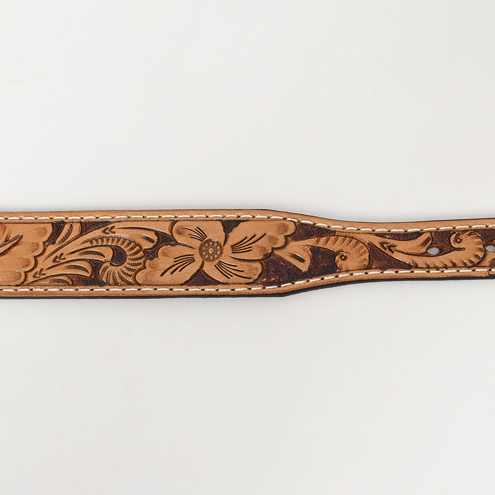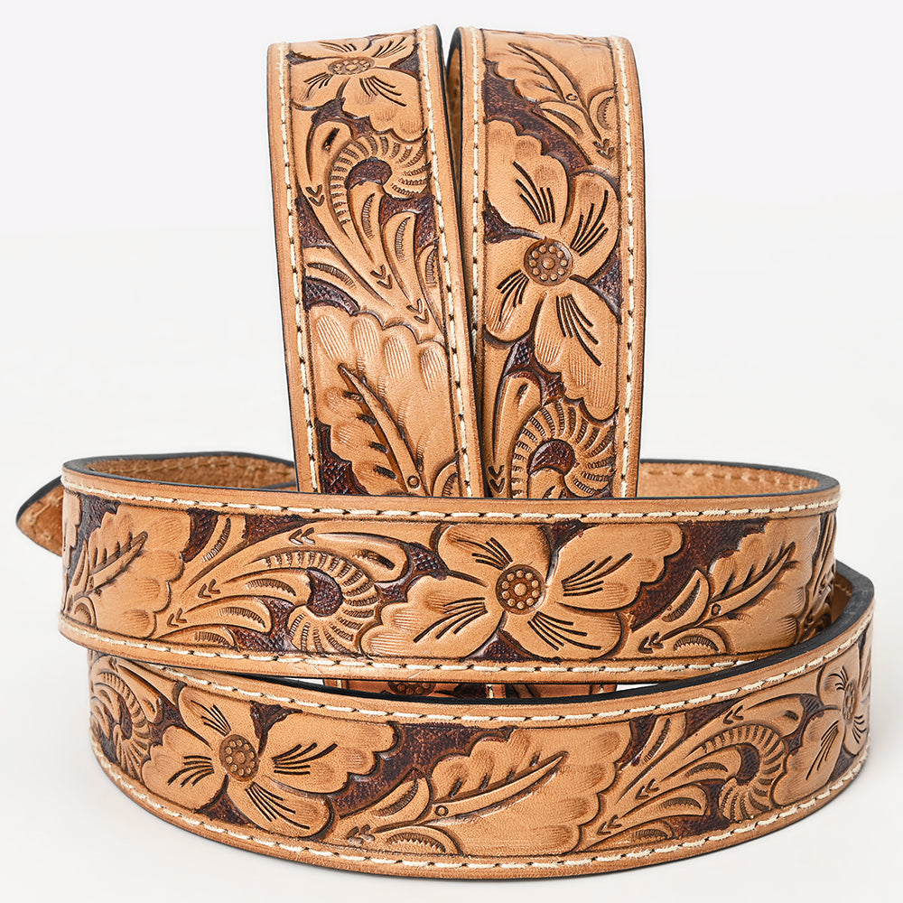 BAR H EQUINE Natural Floral Designs Hand Painted Western Leather Men And Women Belt Tan