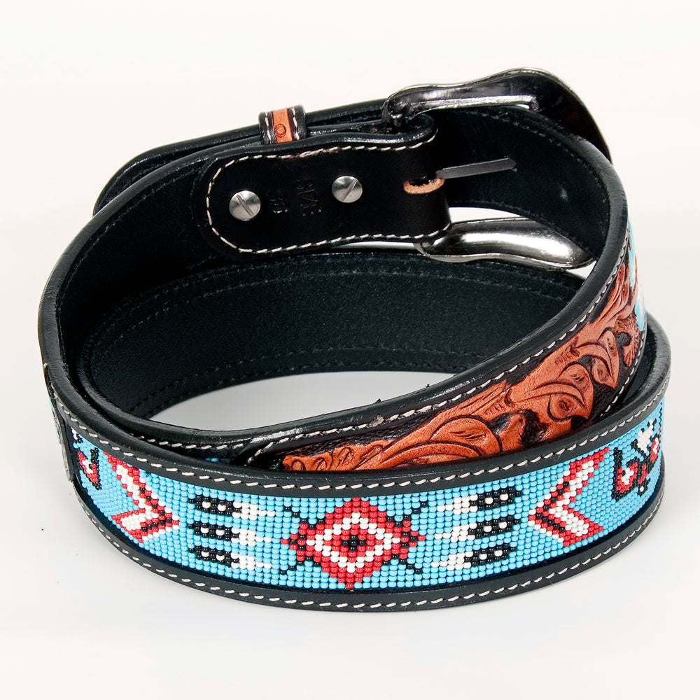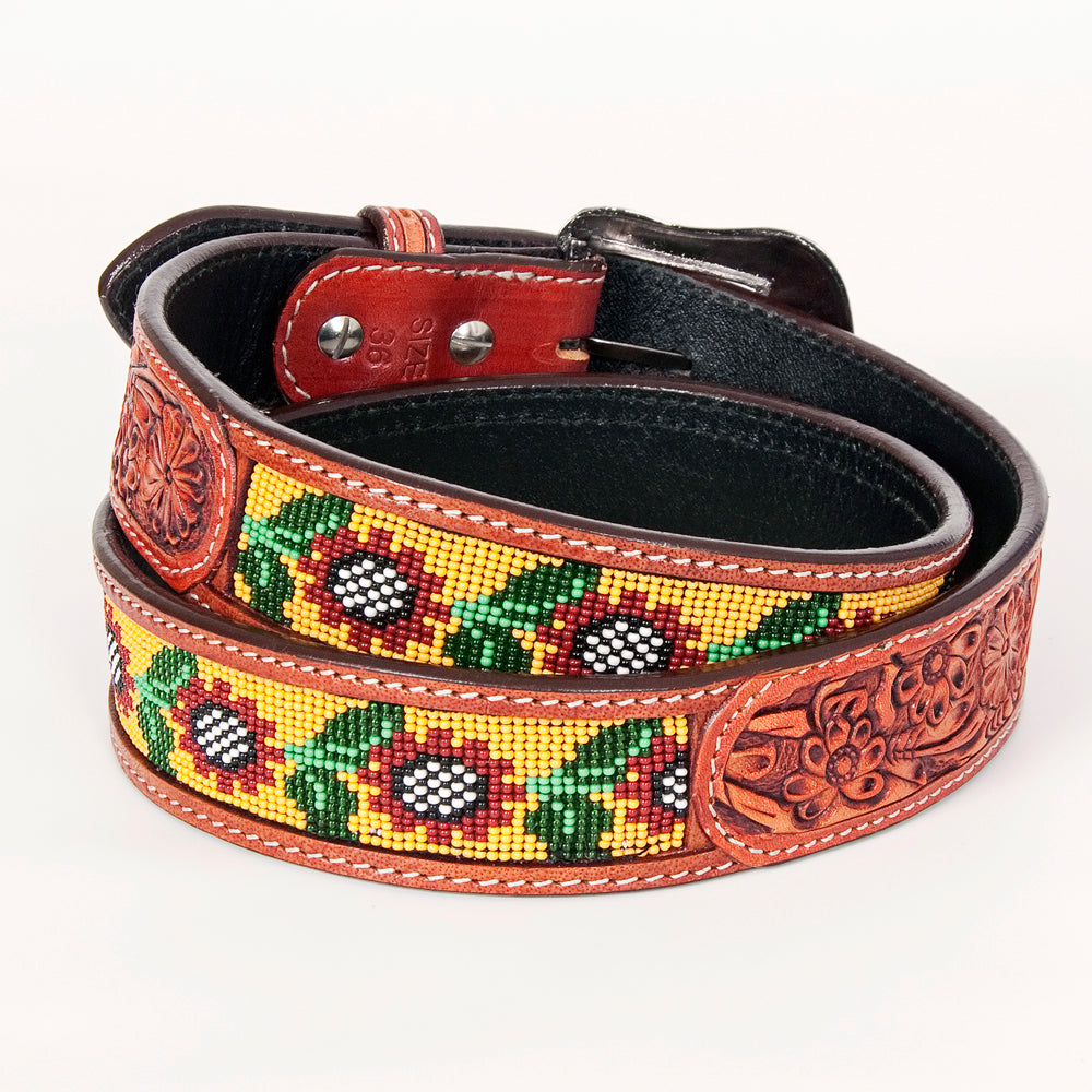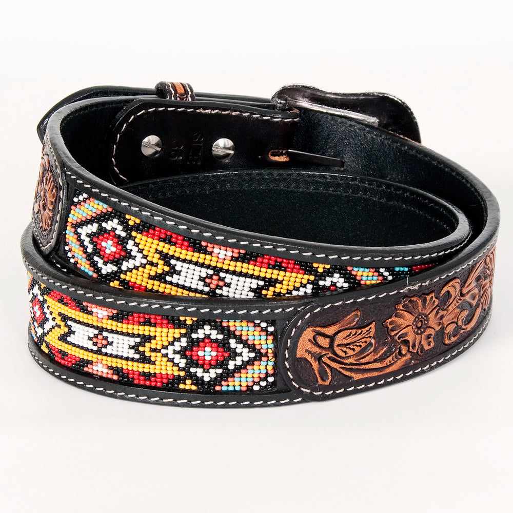 Bar H Equine Hand Carved Western Leather Belt Men Women Beaded
