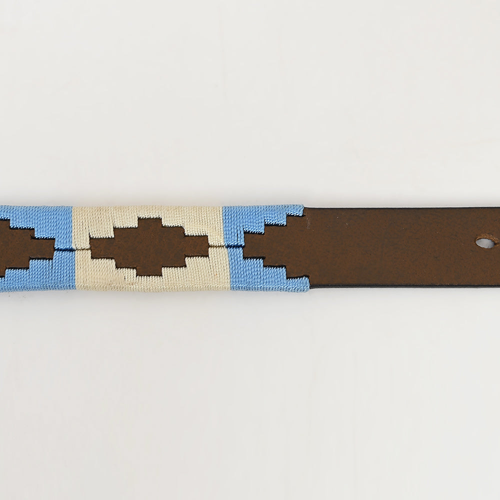 BAR H EQUINE Western Genuine Leather Men And Women Brown Belt Embroidered Beige & Light Blue