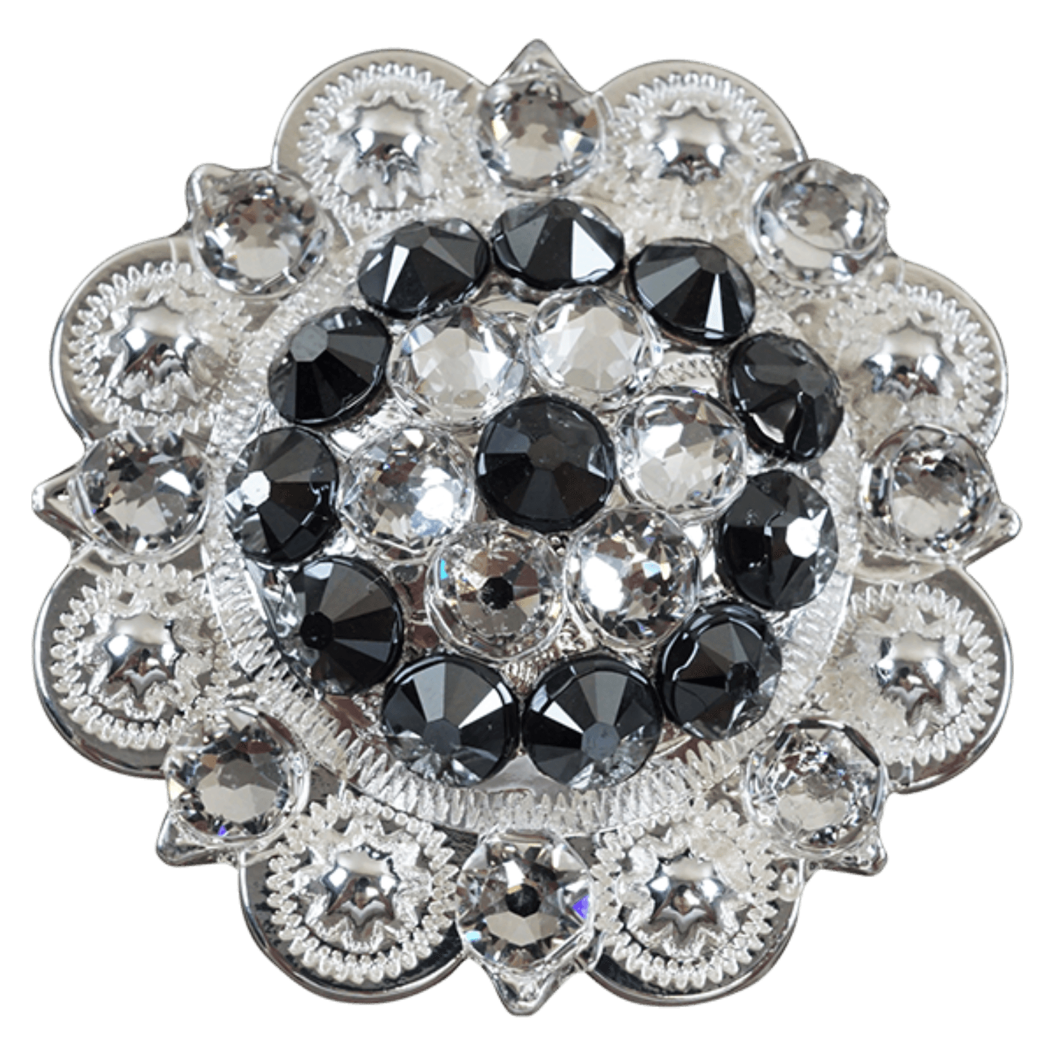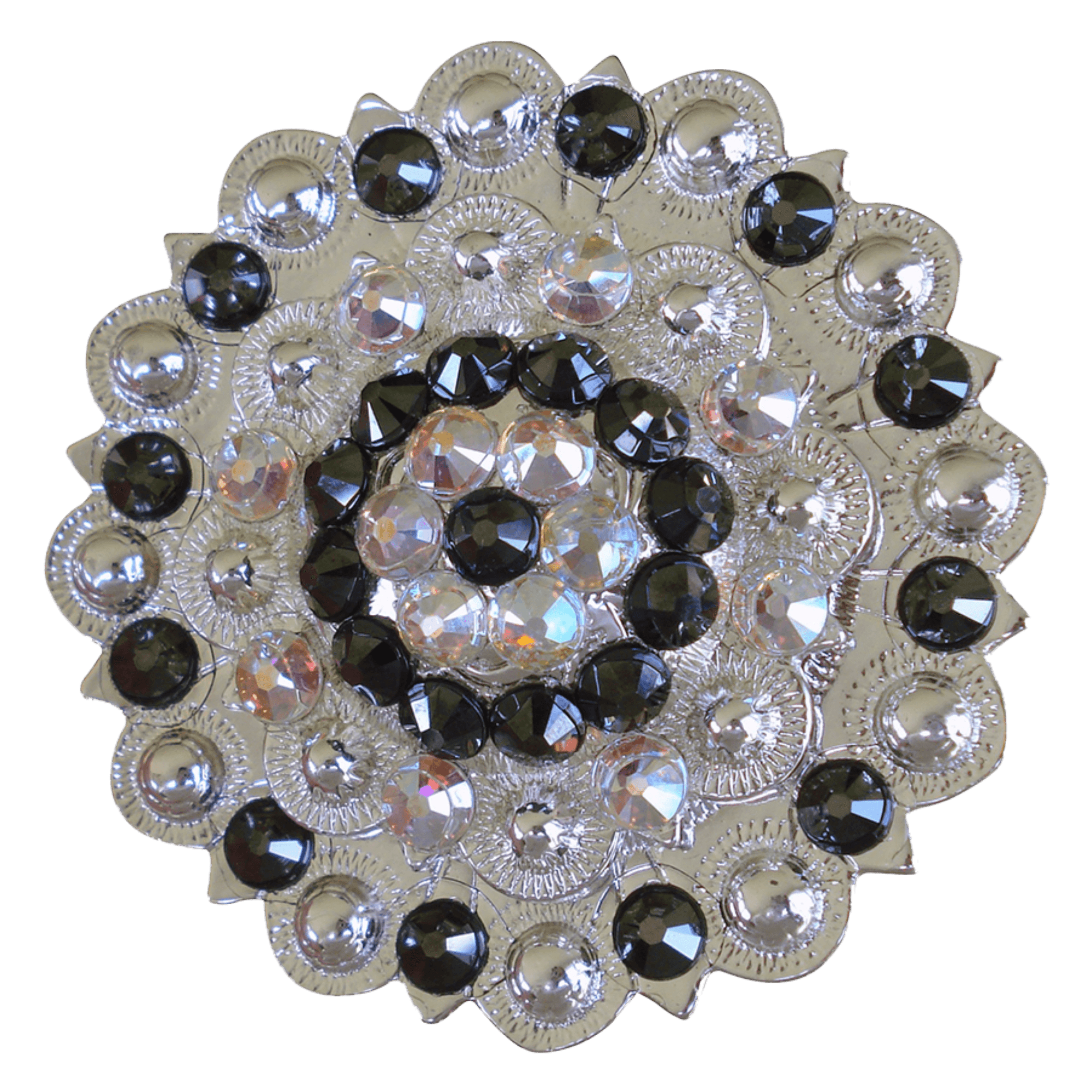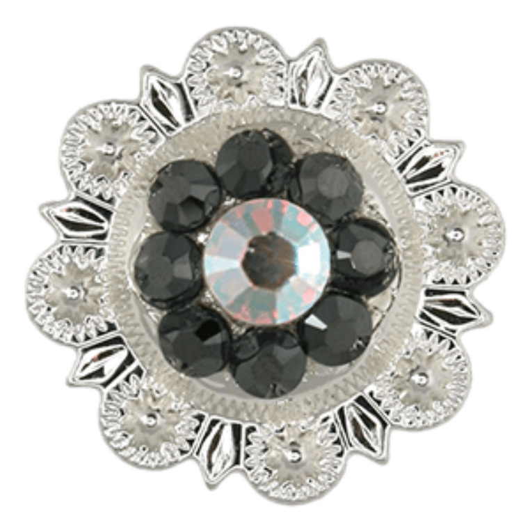 Bright Silver Jet & AB Crystal Conchos - Sizes from 1"- 3" and Buckles