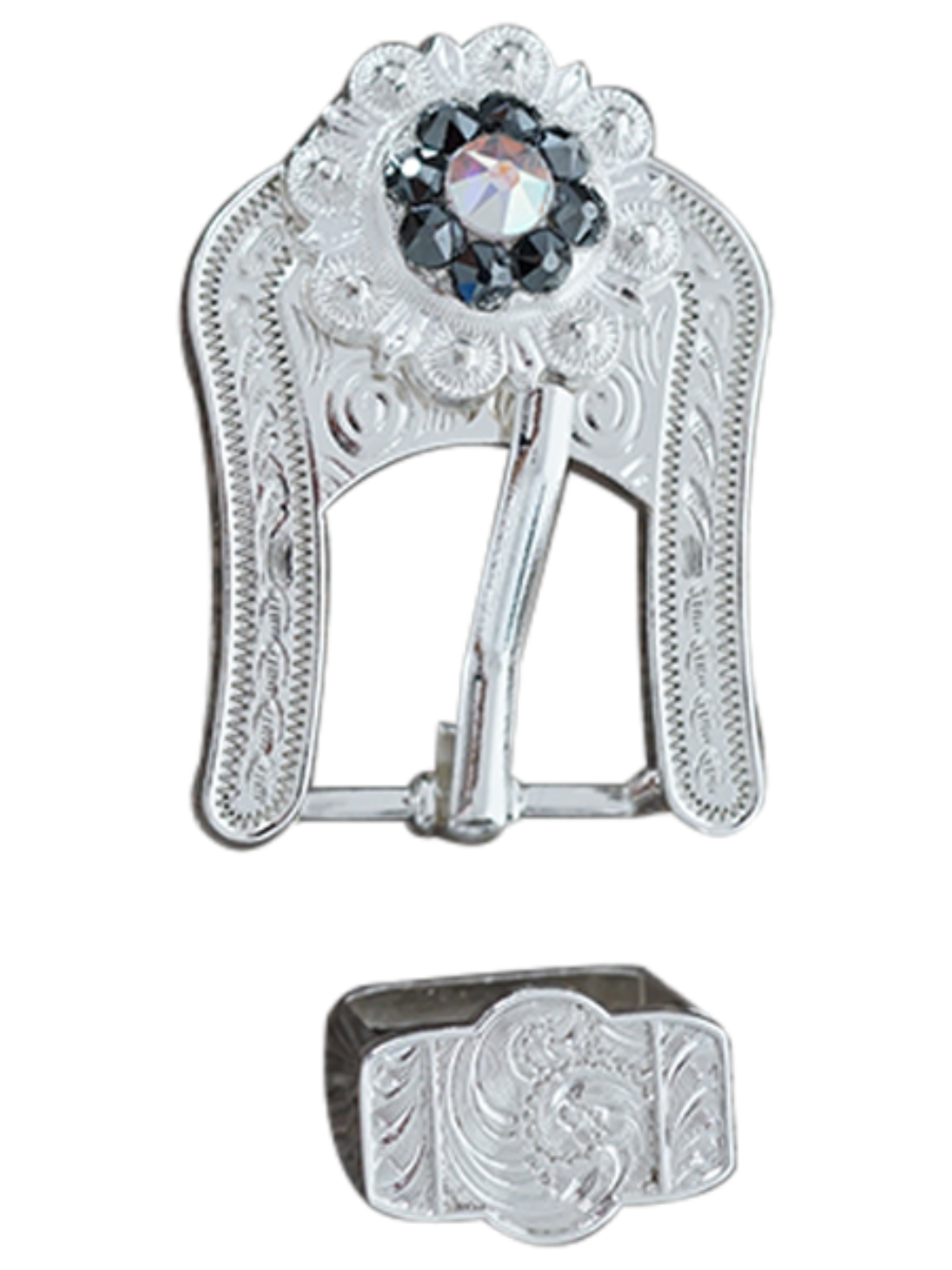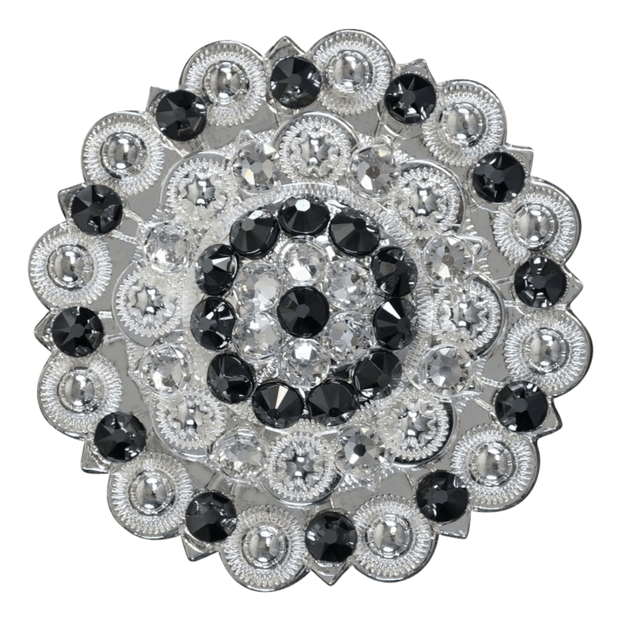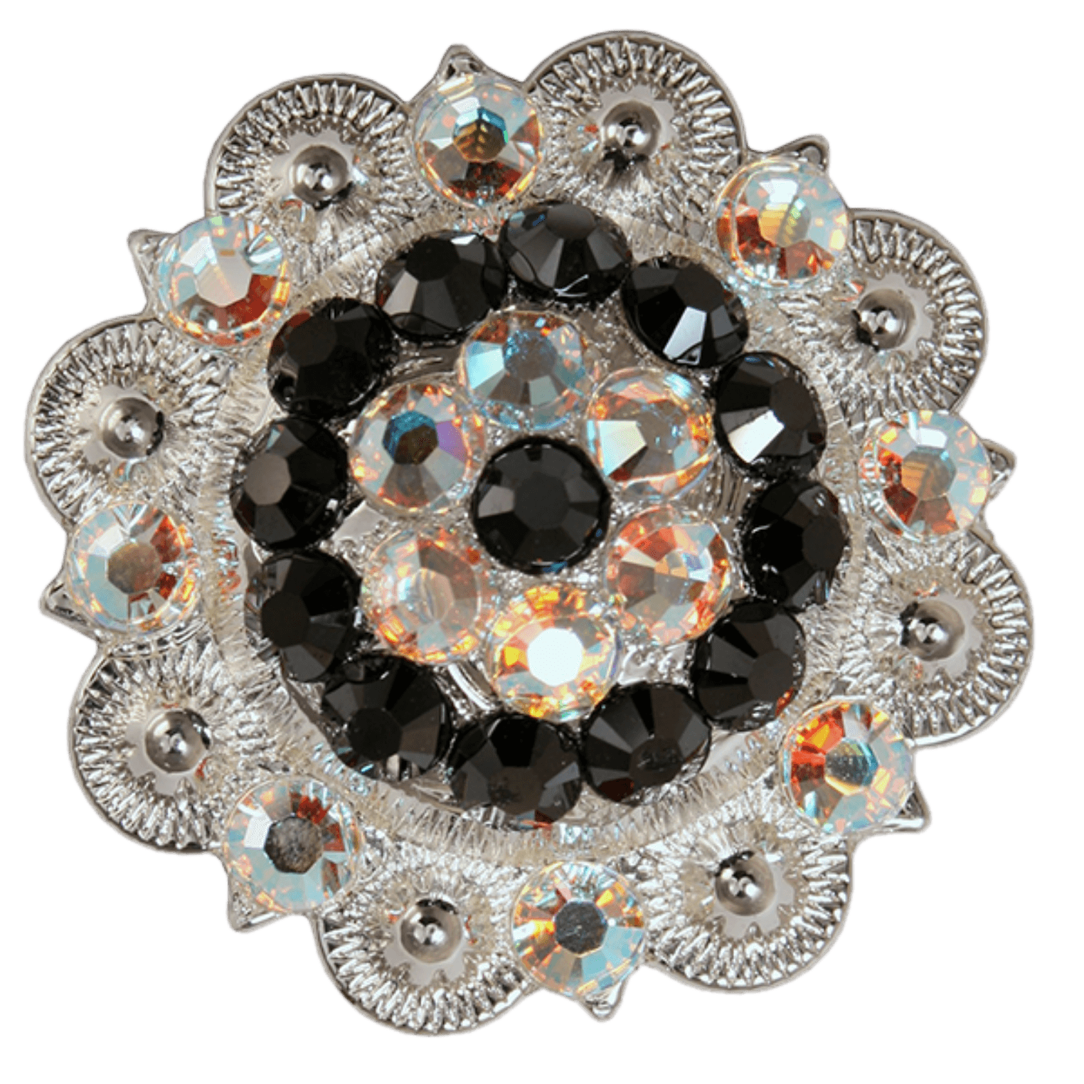Bright Silver Jet & AB Crystal Conchos - Sizes from 1"- 3" and Buckles