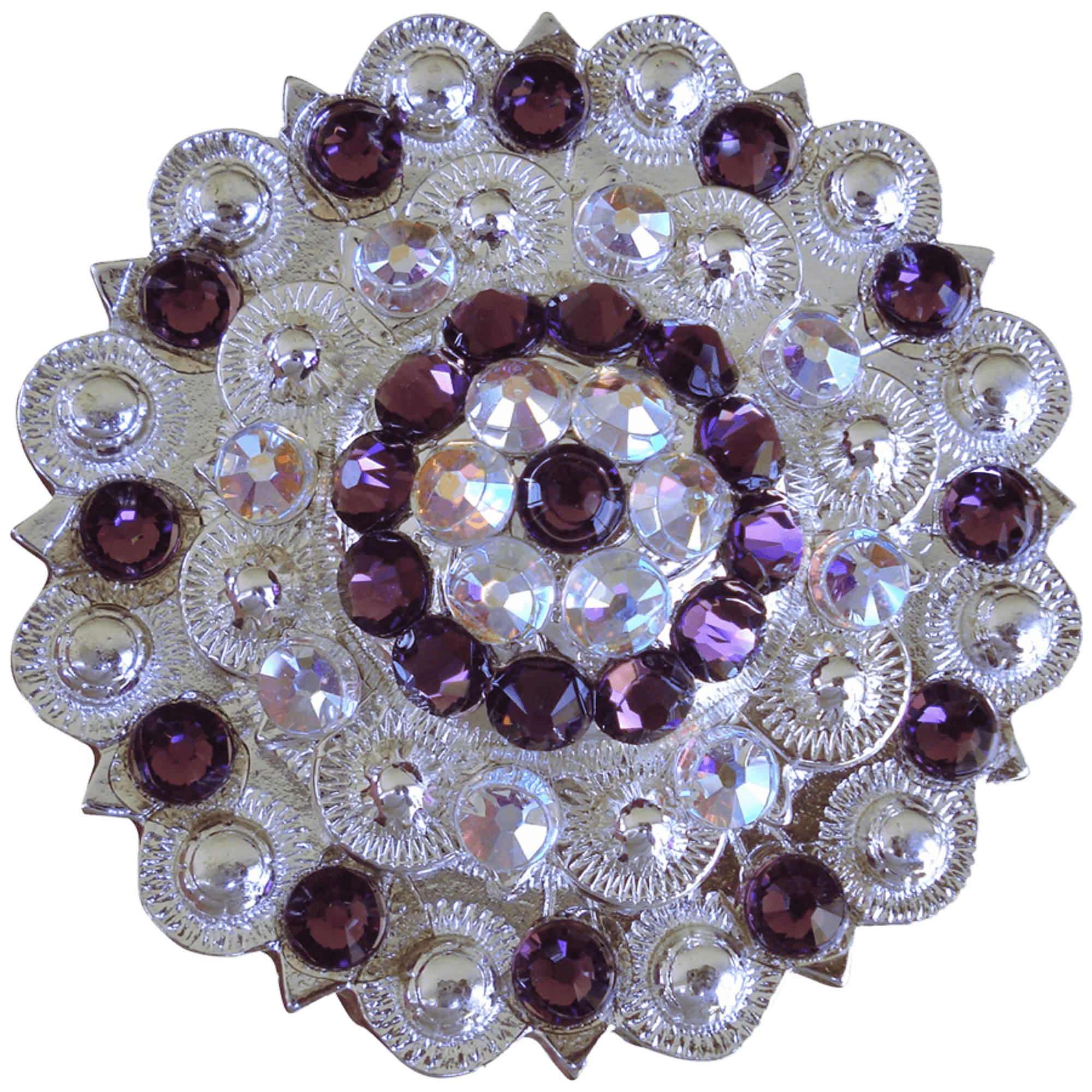 Bright Silver Purple & AB Crystal Conchos - Sizes from 1"- 3" and Buckles