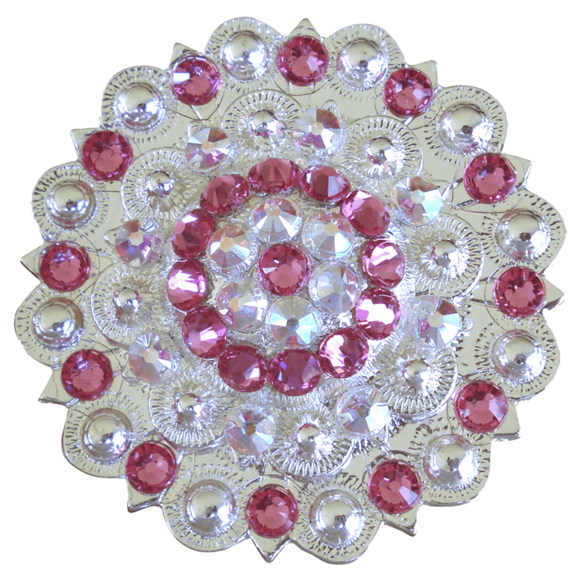 Bright Silver Pink & AB Crystal Conchos - Sizes from 1"- 3" and Buckles
