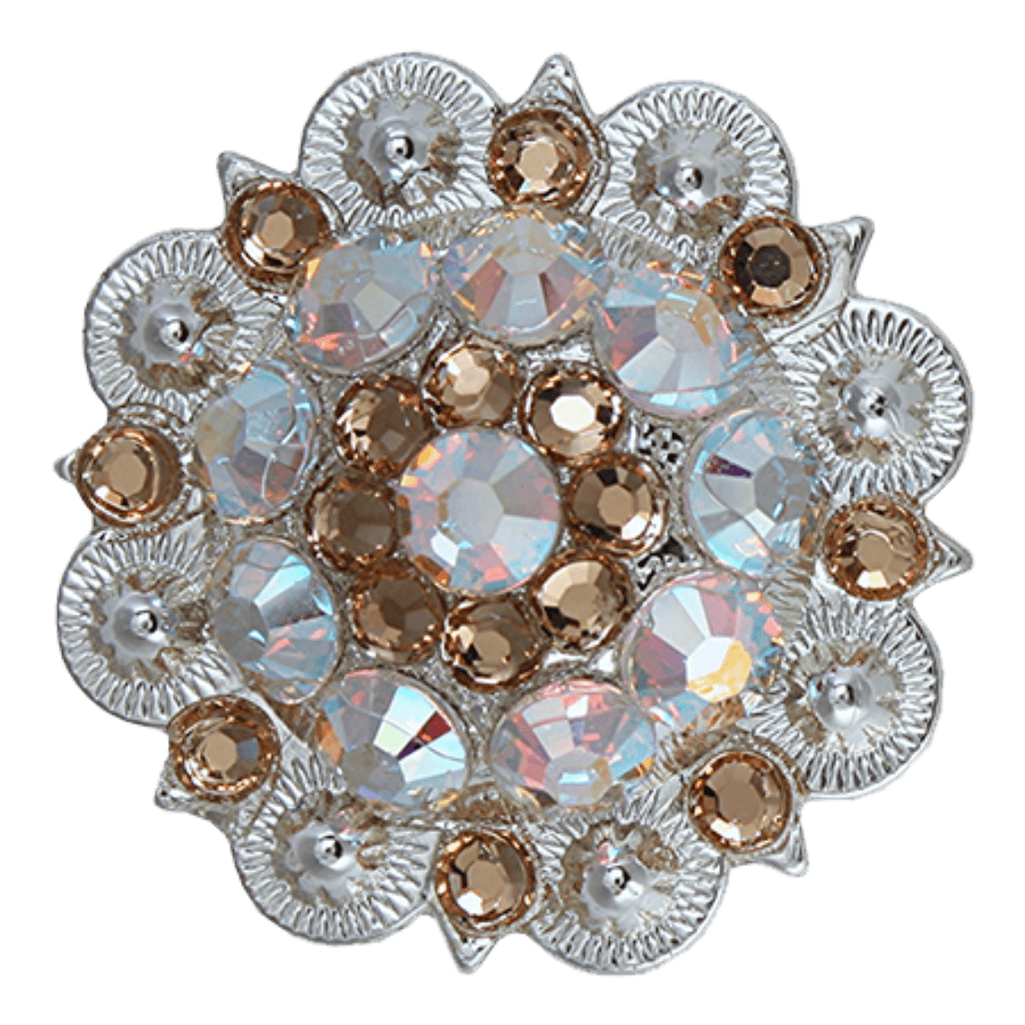 Bright Silver Champagne & AB Crystal Conchos - Sizes from 1"- 3" and Buckles