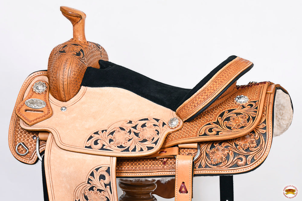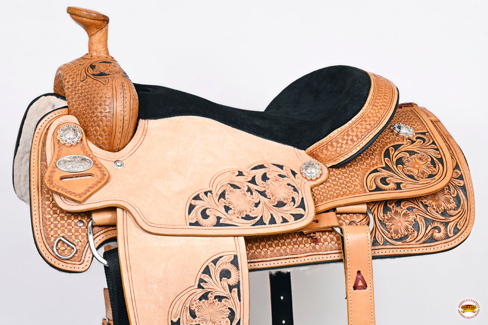 HILASON Flex Tree Western Horse Saddle in American Leather Barrel Trail | for Horses