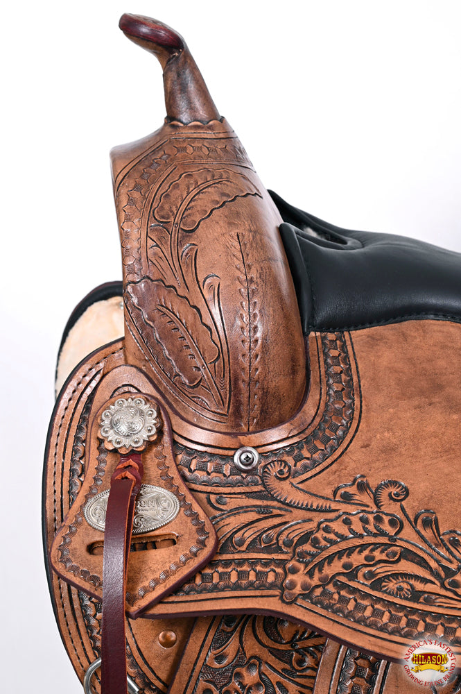 15 In Hilason Flex Tree Western Horse Buckstitch Trail Barrel American Leather Saddle Brown