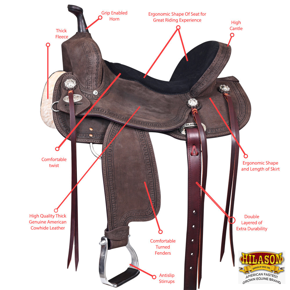 Hilason Western Horse Saddle American Leather Ranch Roping Cowboy