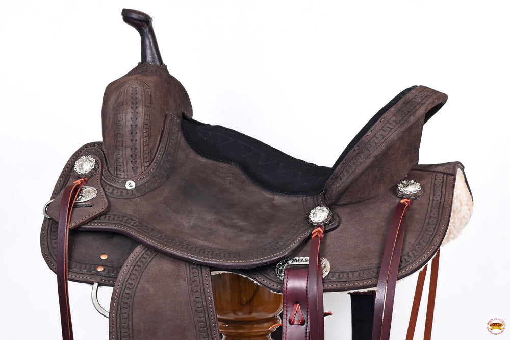 Hilason Western Horse Flex Tree Barrel Trail In Suede Leather Saddle Brown