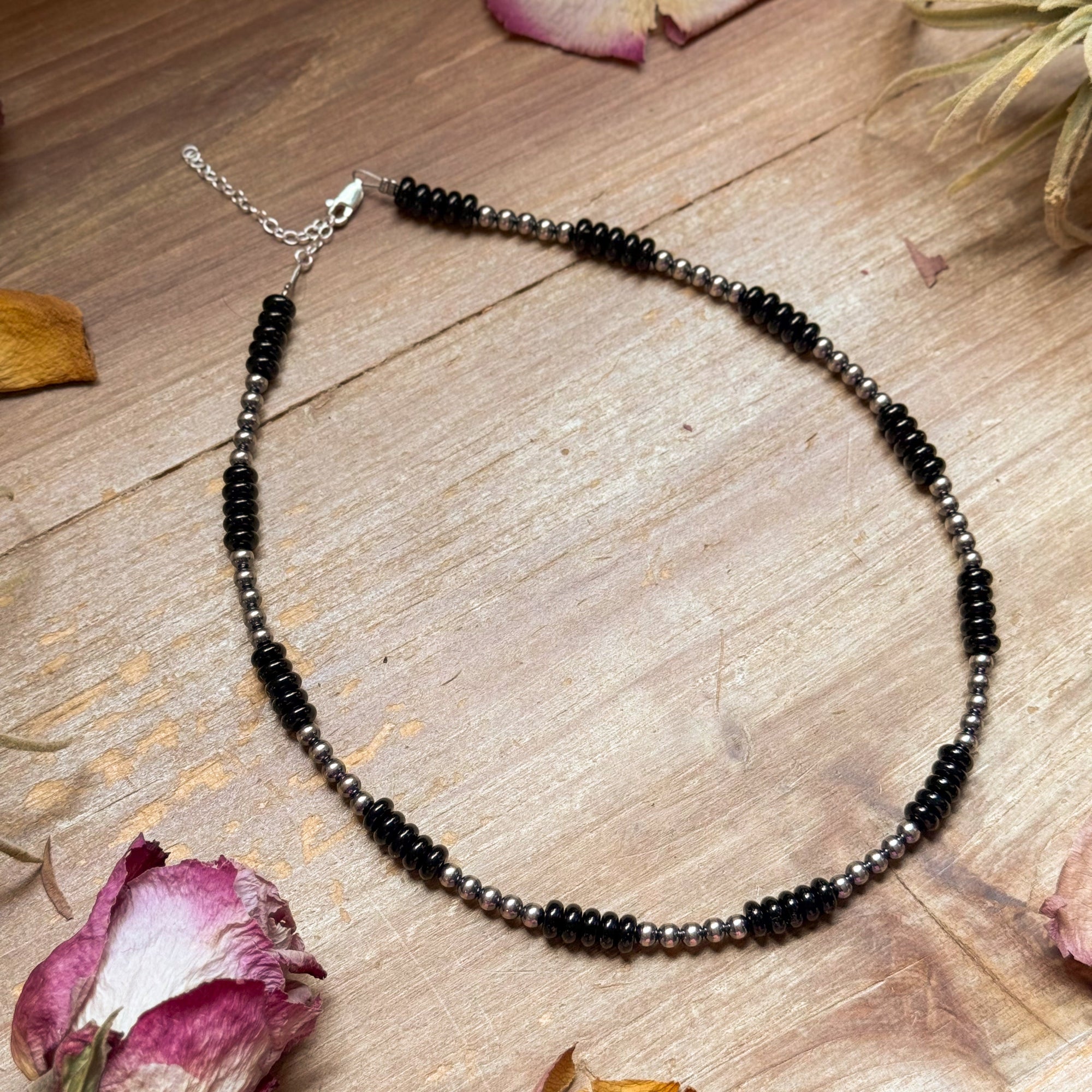 Black Onyx & Sterling Silver Pearl Choker – 14”