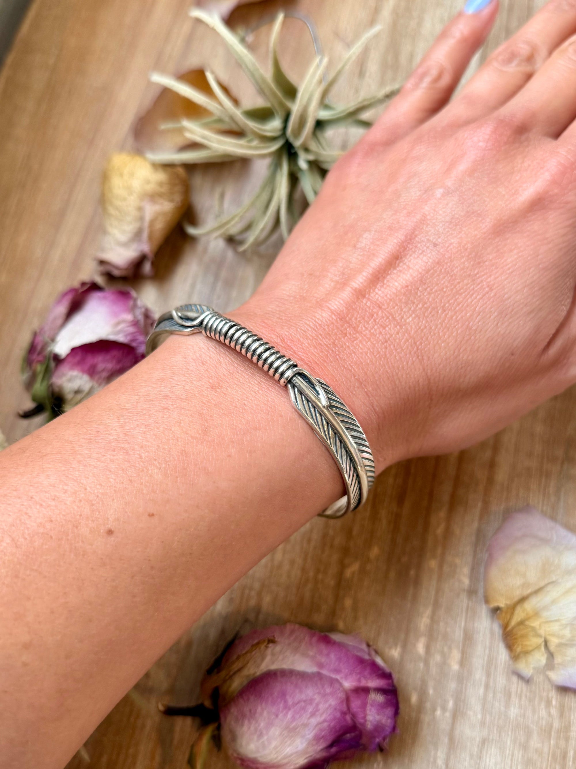 Sterling Silver Hudson Feather Cuff – Fits 7.5” Wrist – Handmade by Artist Jason Ogg