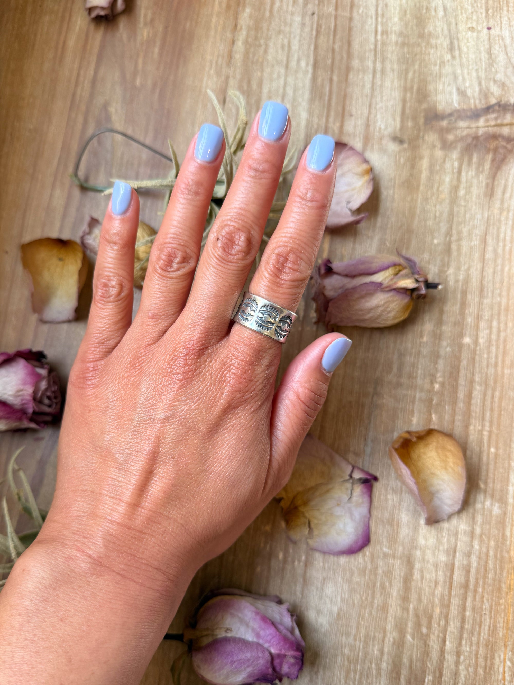 Sterling Silver Hand-Milled Wide Band Sun Ray Stamped Ring – Size 8.5 – Handmade by Artist Jason Ogg