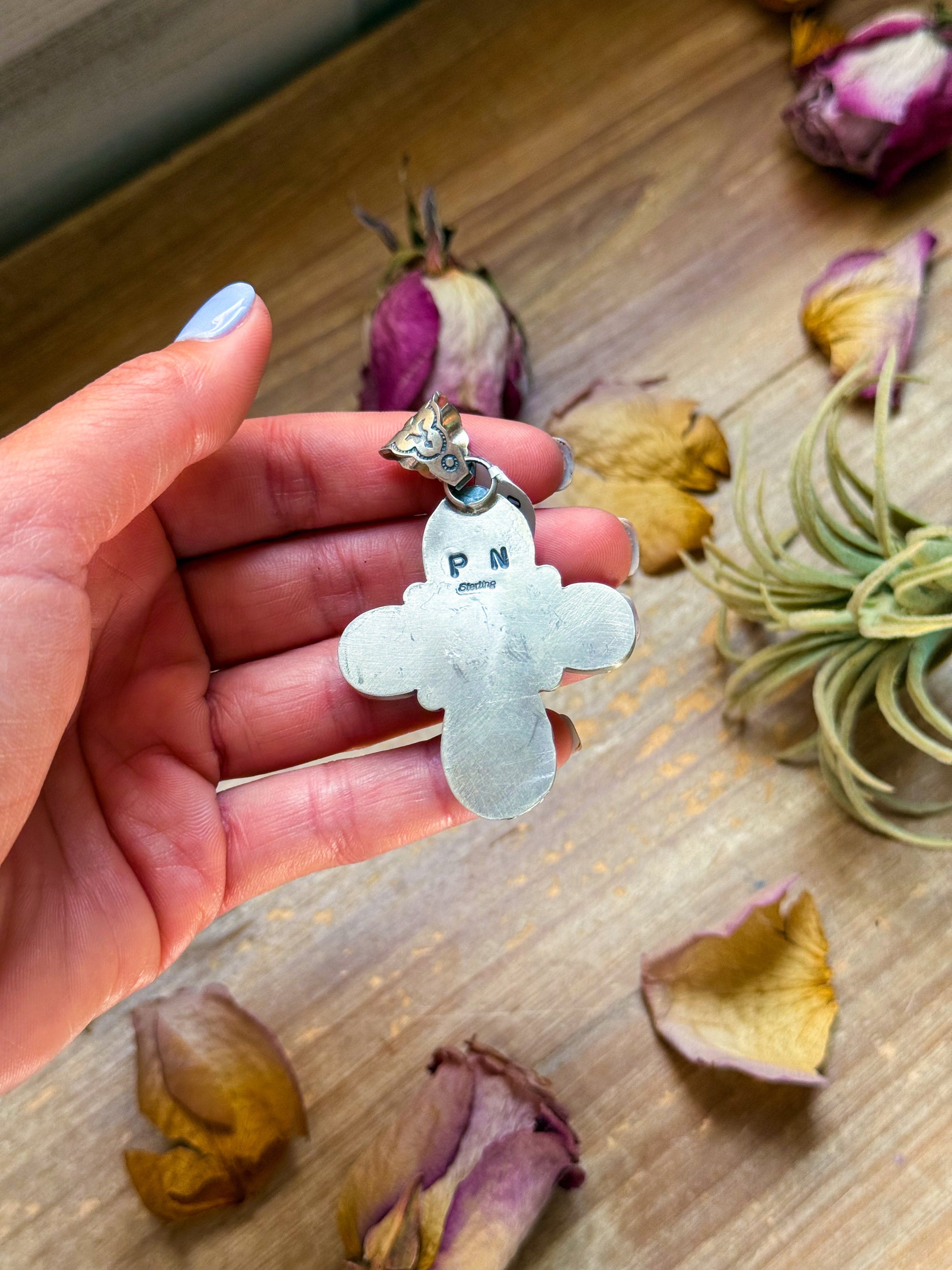 Sterling Silver Blue Dream Turquoise Blossom Pendant – Handmade by Artist Jason Ogg