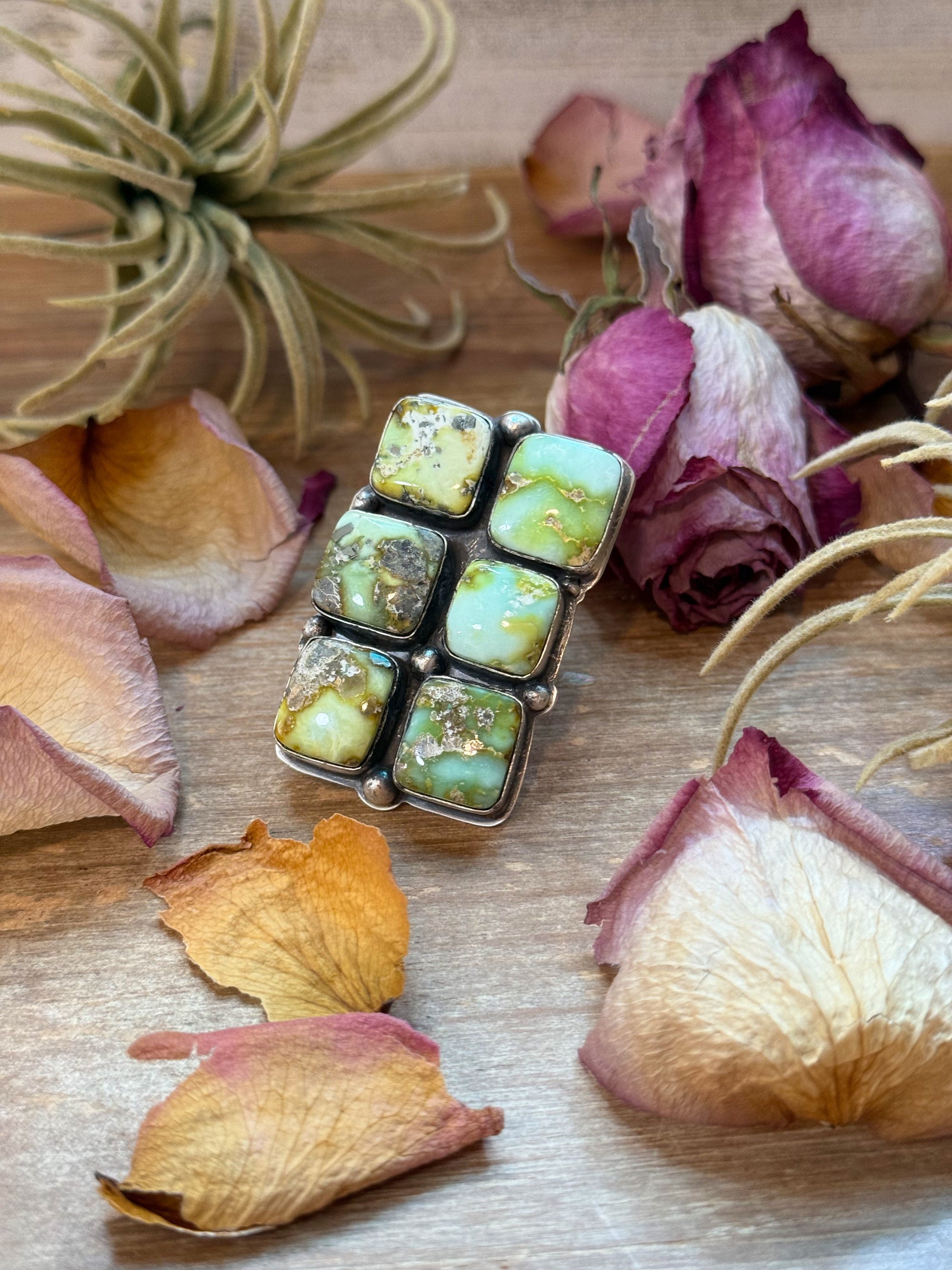 Green Turquoise Sterling Silver Cluster Ring – Size 6
