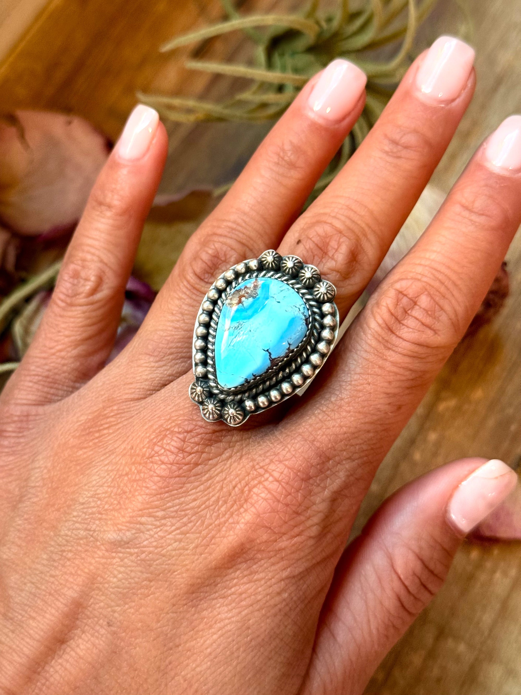 Kingman Turquoise Sterling Silver Ring – Size 8 (Slightly Adjustable)
