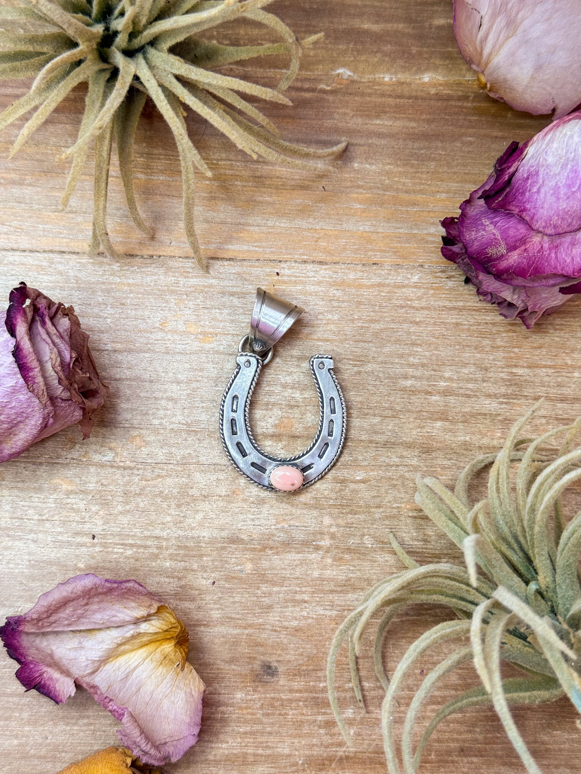 Sterling Silver Horseshoe Pendant with Pink Conch