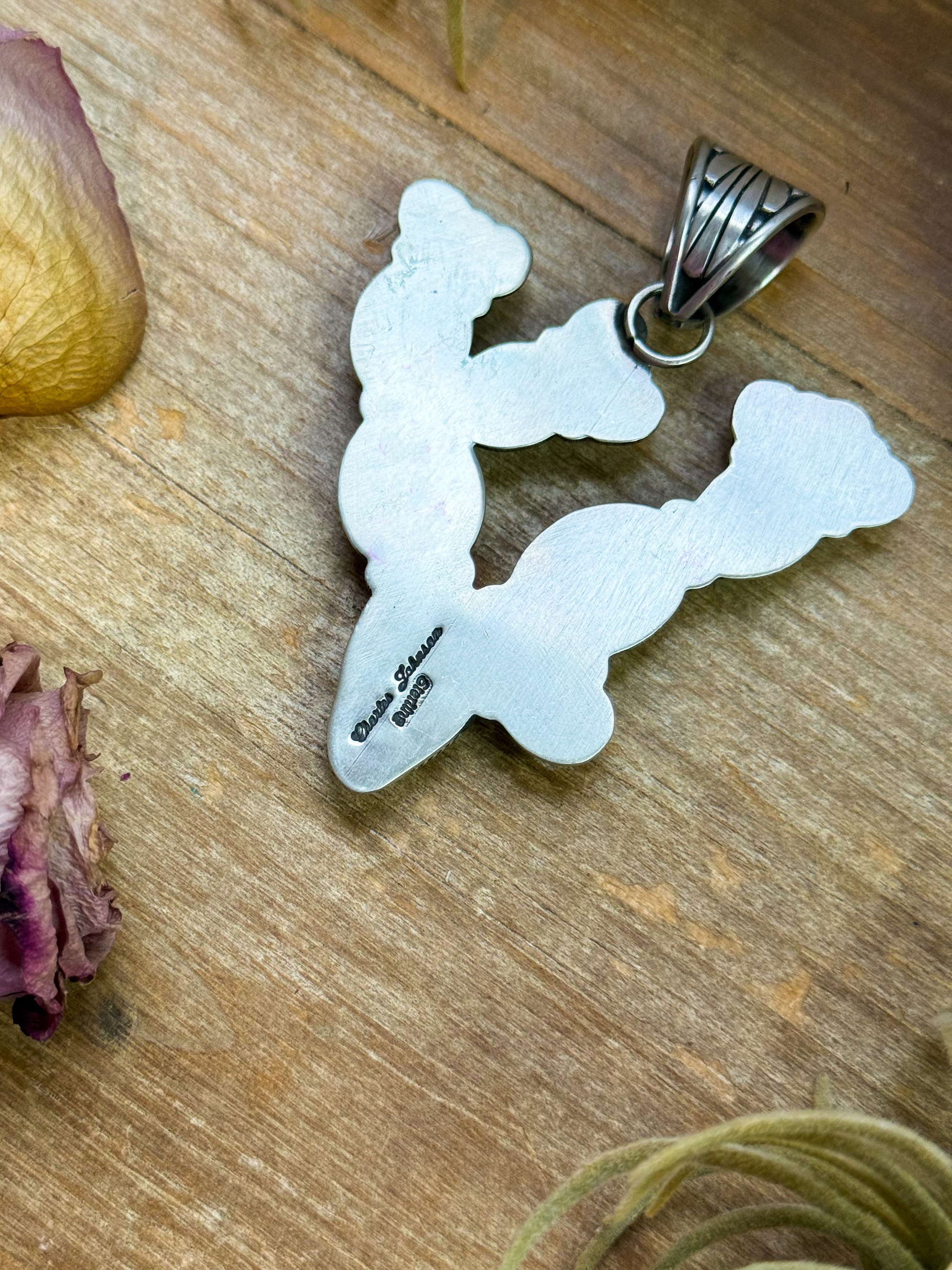 Sterling Silver Cactus Pendant with Sonoran Turquoise & Coral – Native Made by Charles Johnson