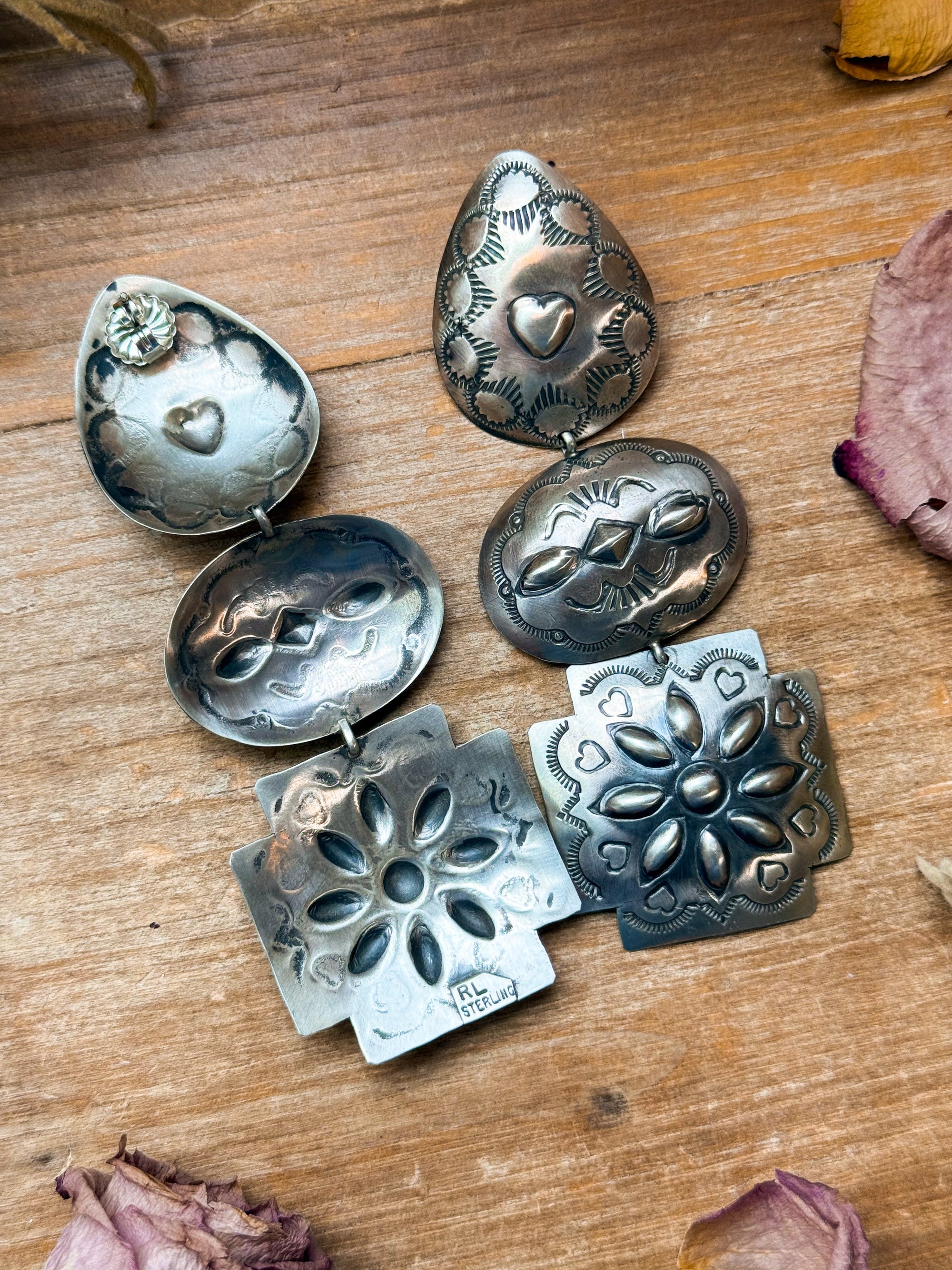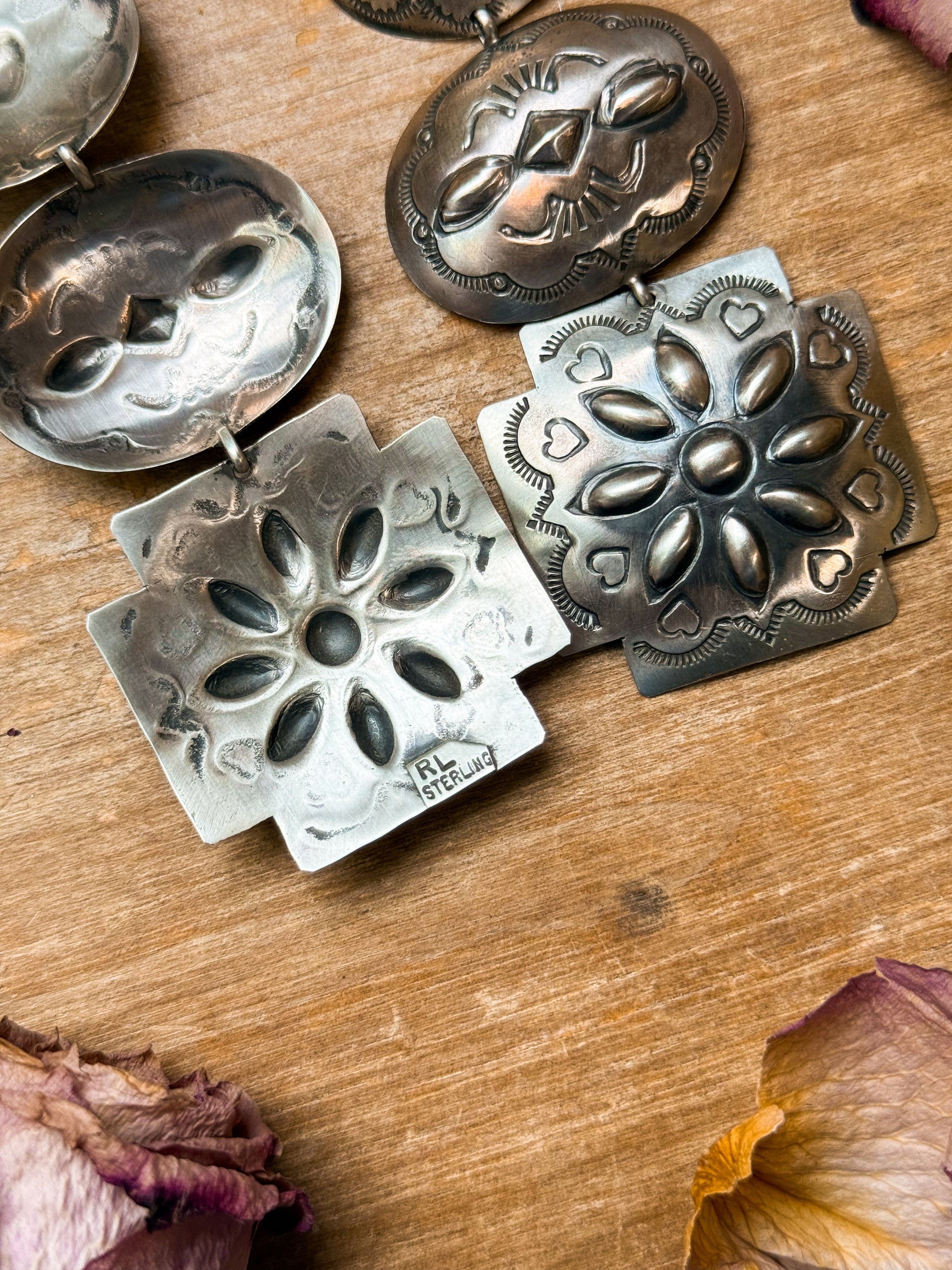 Sterling Silver Concho Dangle Earrings – Native Made by Rita Lee (Navajo Artist)