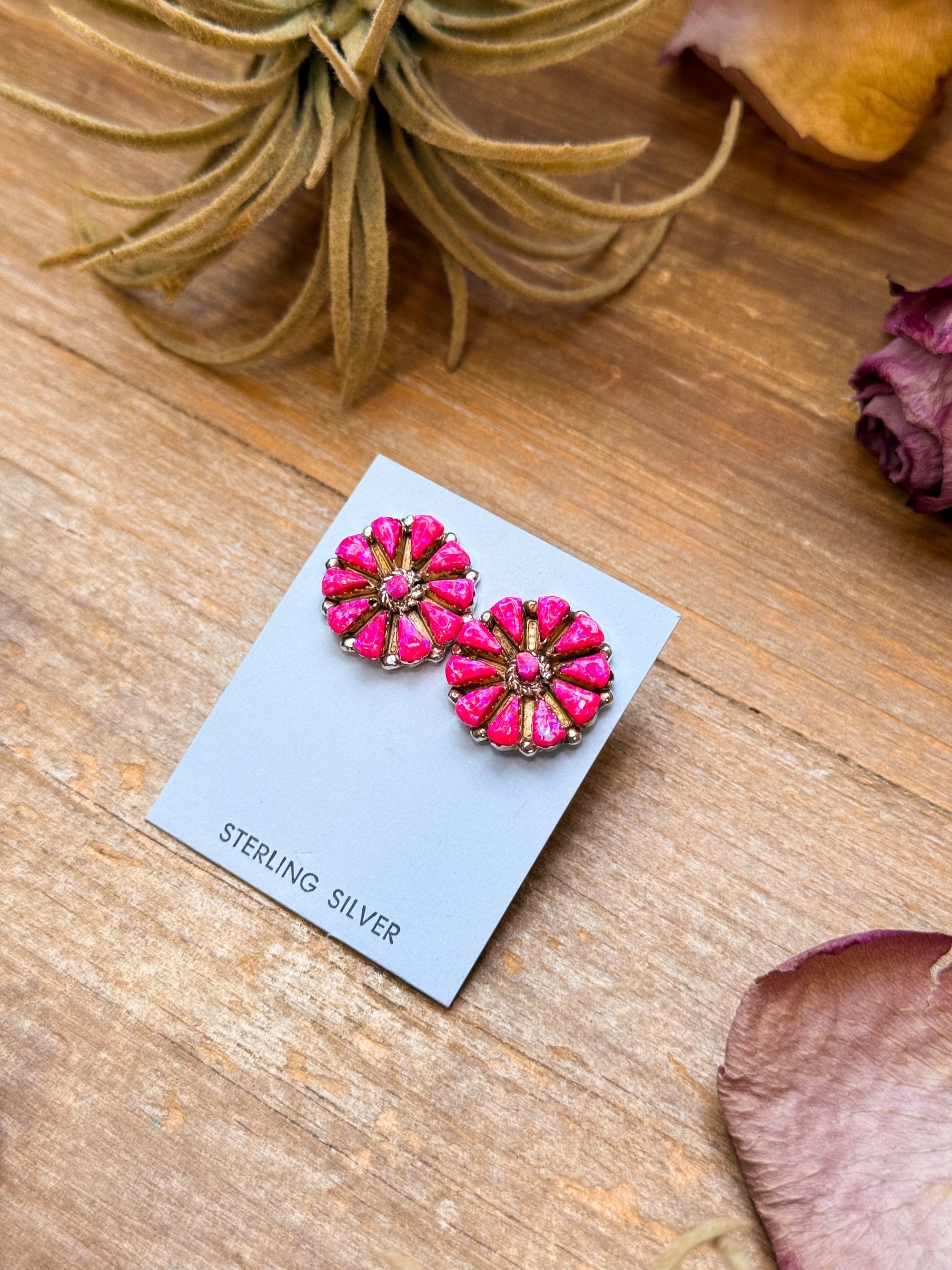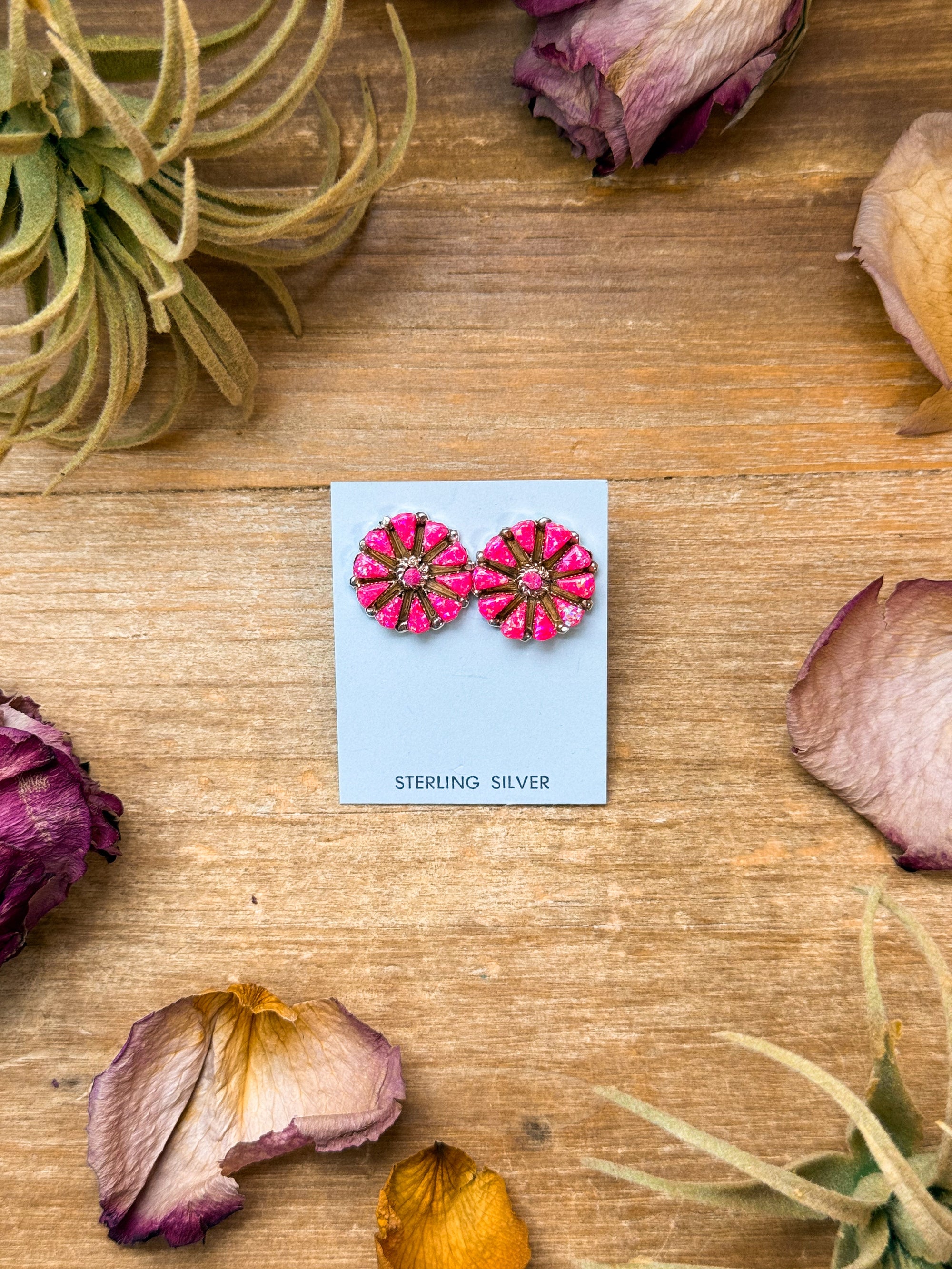 Sterling Silver Pink Conch & Kingman Turquoise Stud Earrings