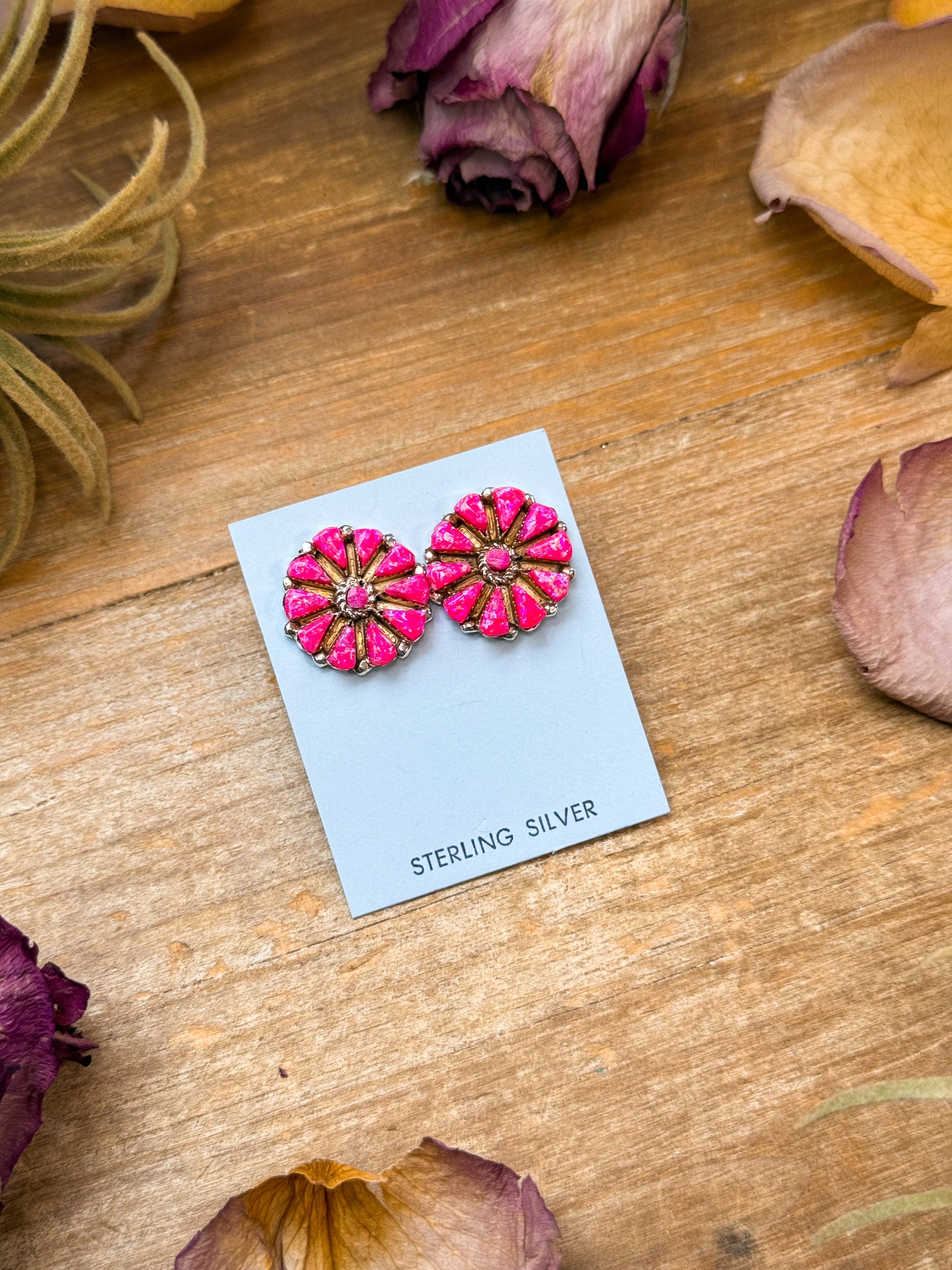 Sterling Silver Concho Earrings with Spiny Oyster – Native Made by Rita Lee