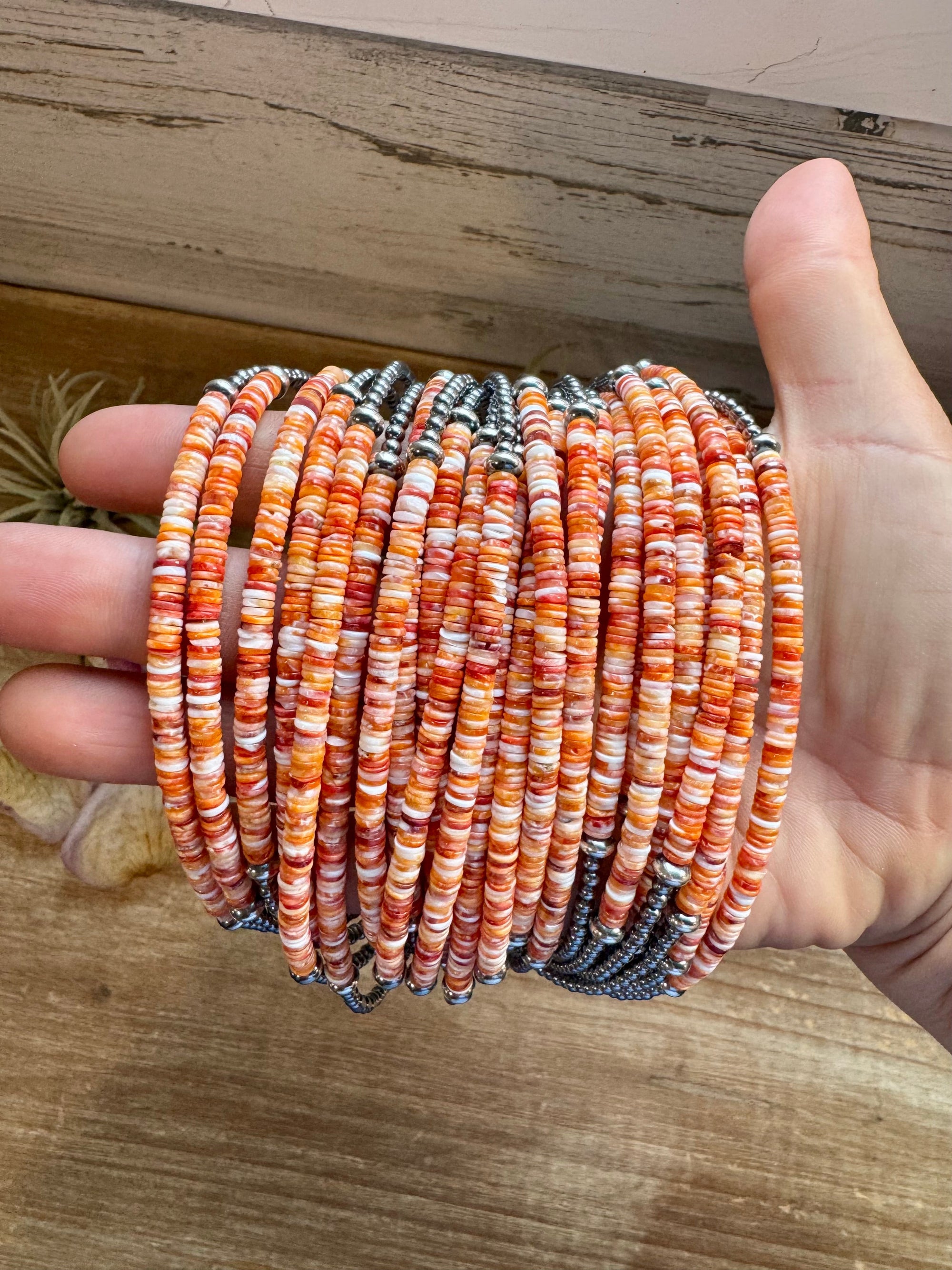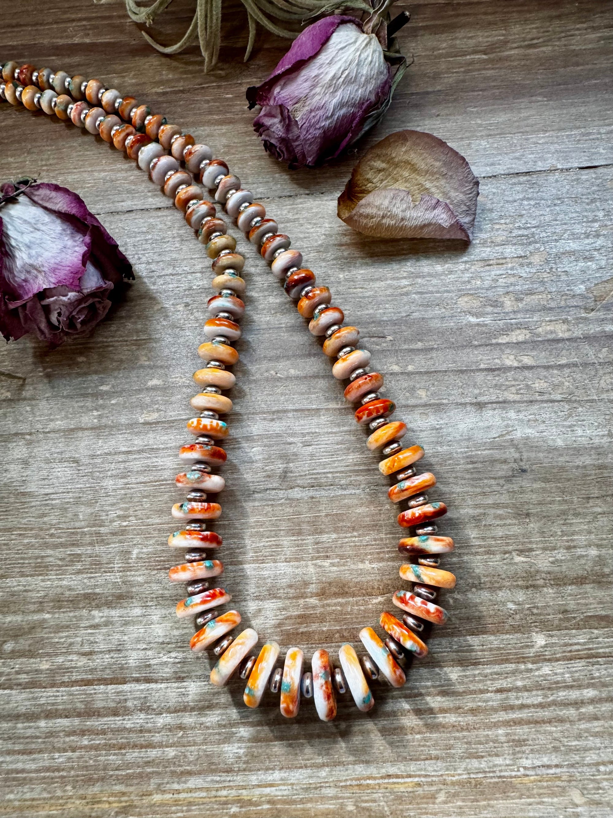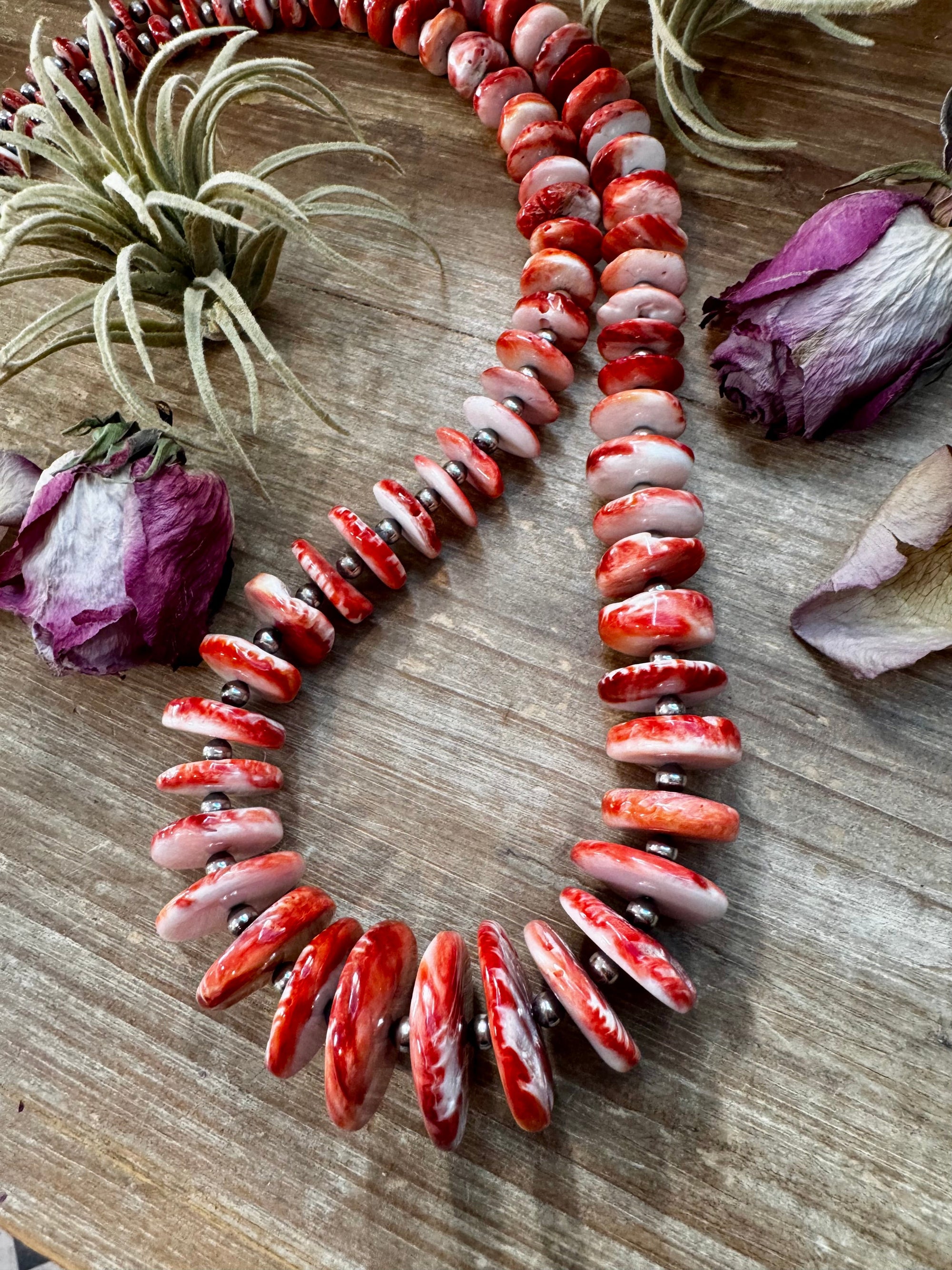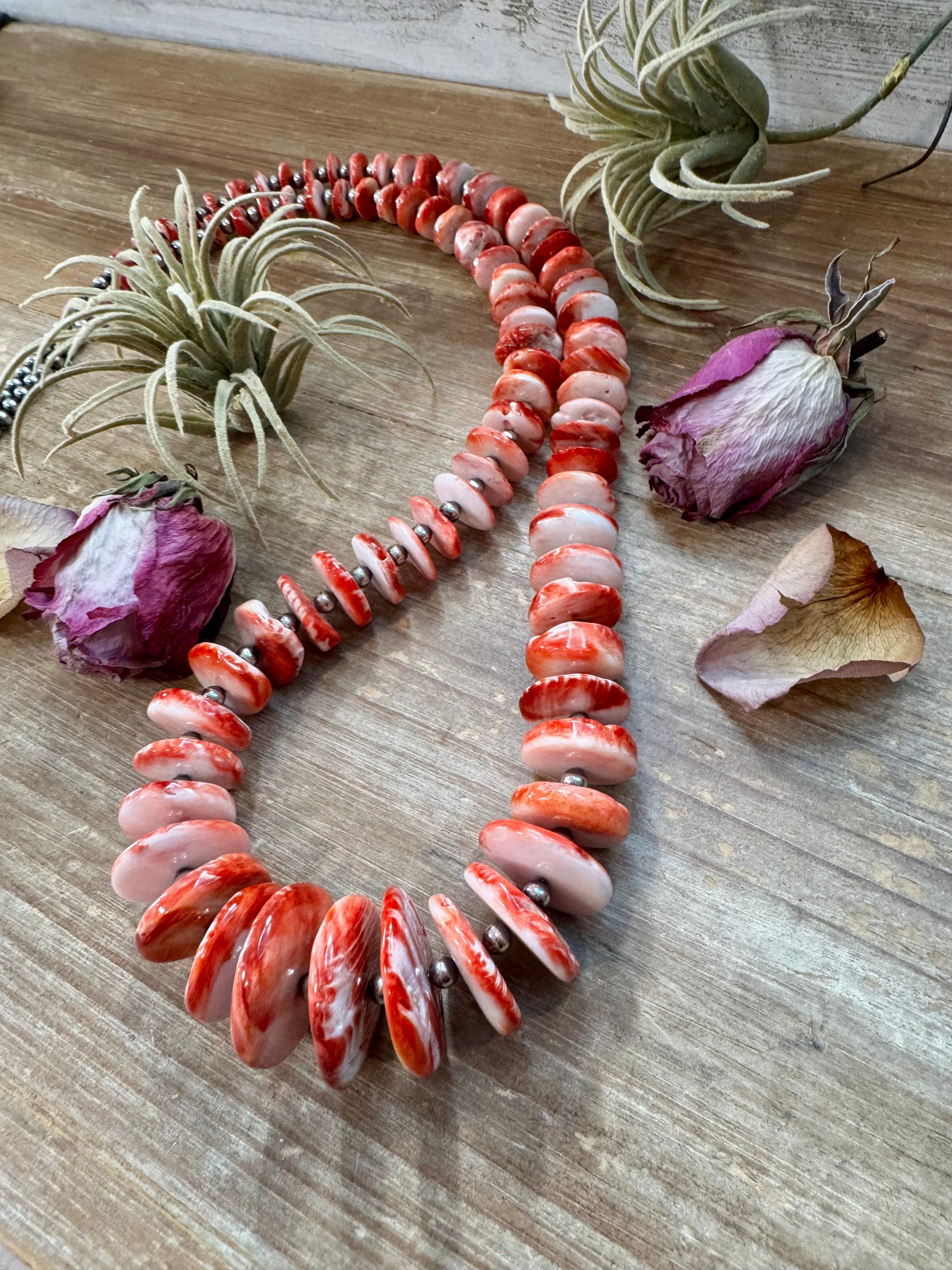 Spiny Oyster Heishi & Sterling Silver Pearl Choker