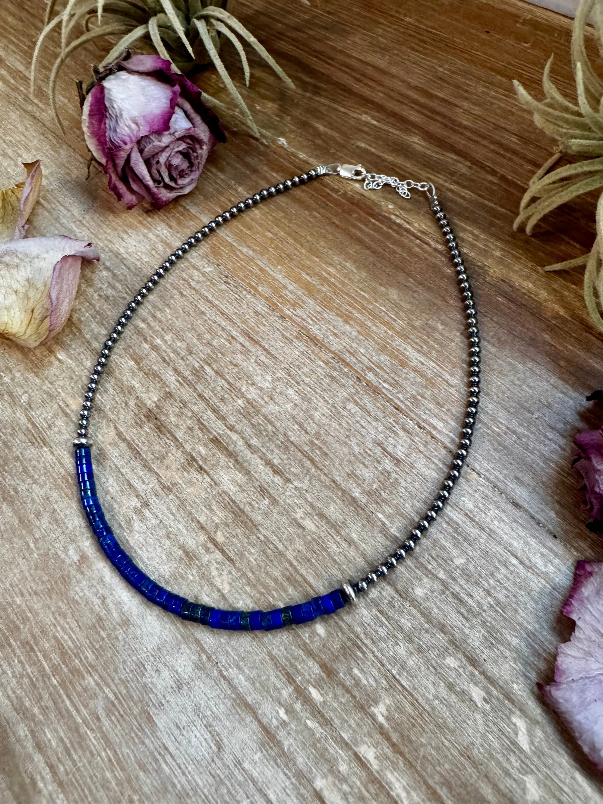 14.5" Torpedo Bead Choker – Sterling Silver Pearls & Green Turquoise