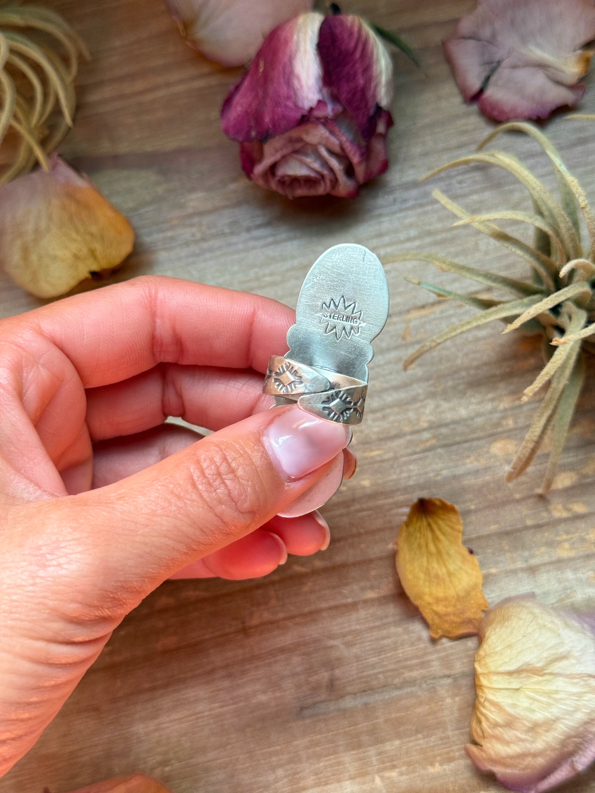 Pink Conch Shell Sterling Silver Ring – Size 7 or 8