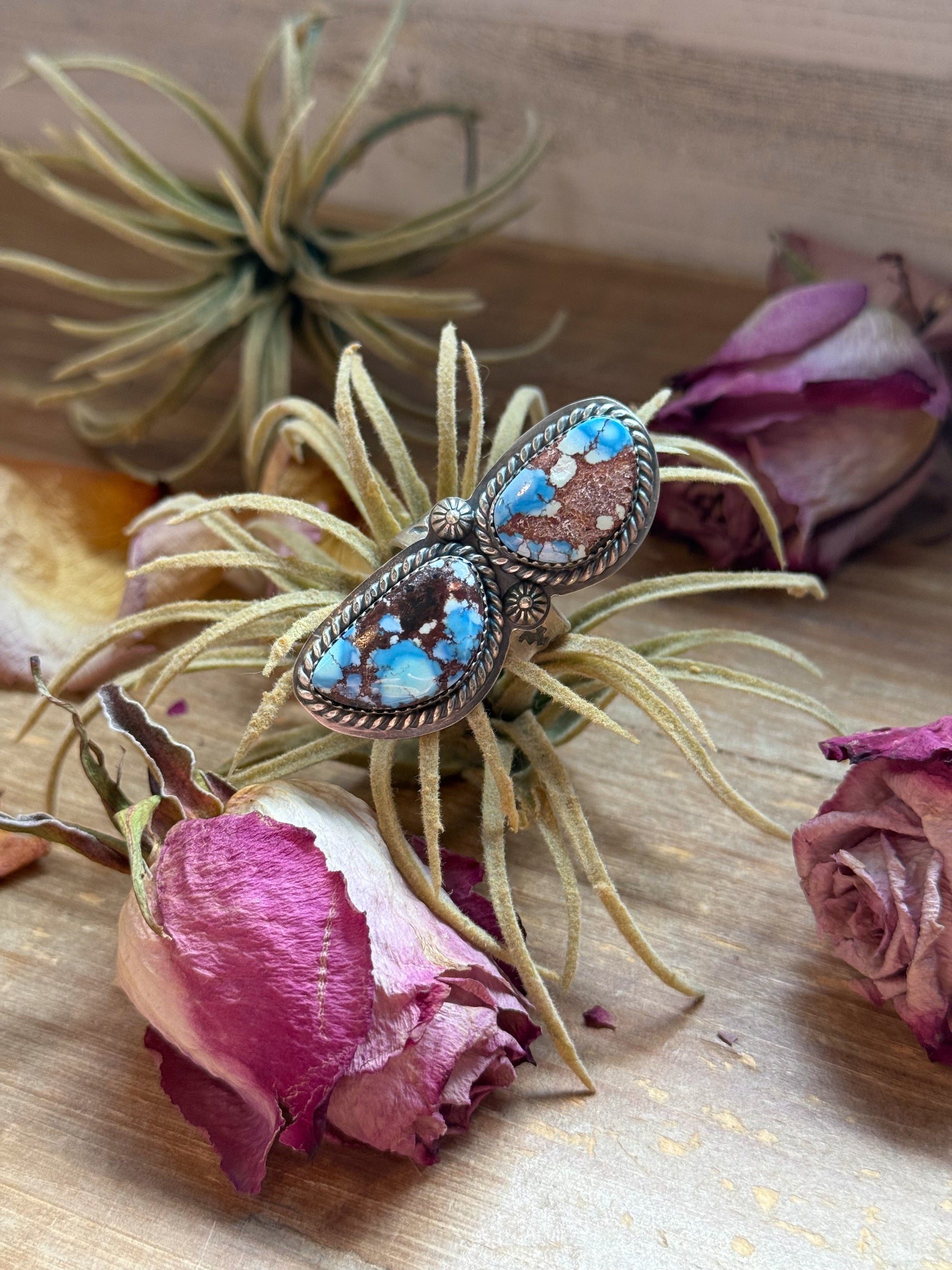 2-Stone Golden Hills Turquoise Sterling Silver Ring – Adjustable