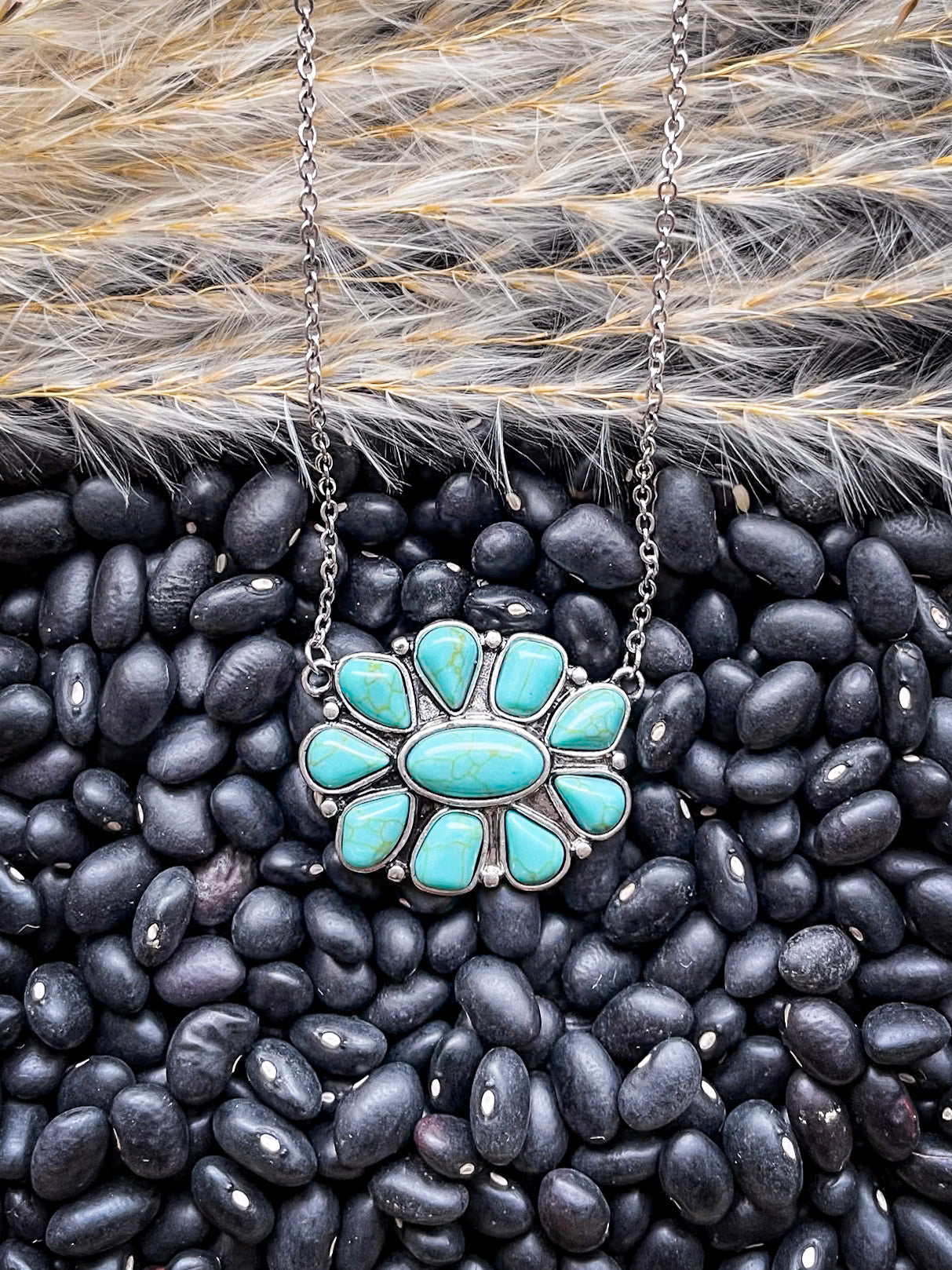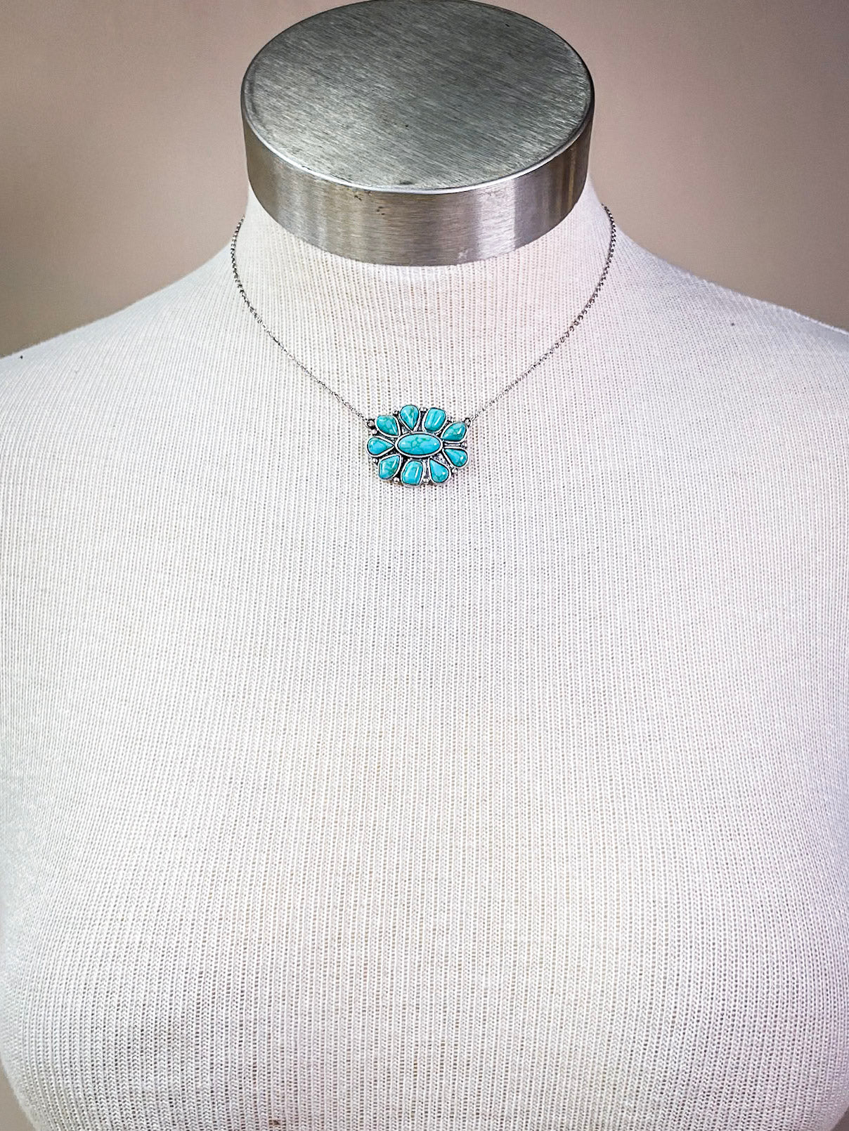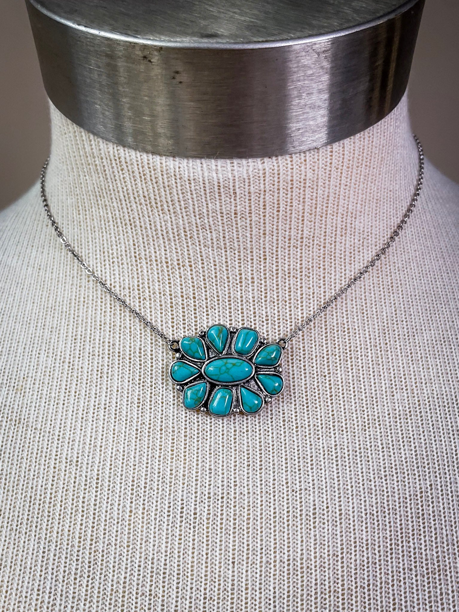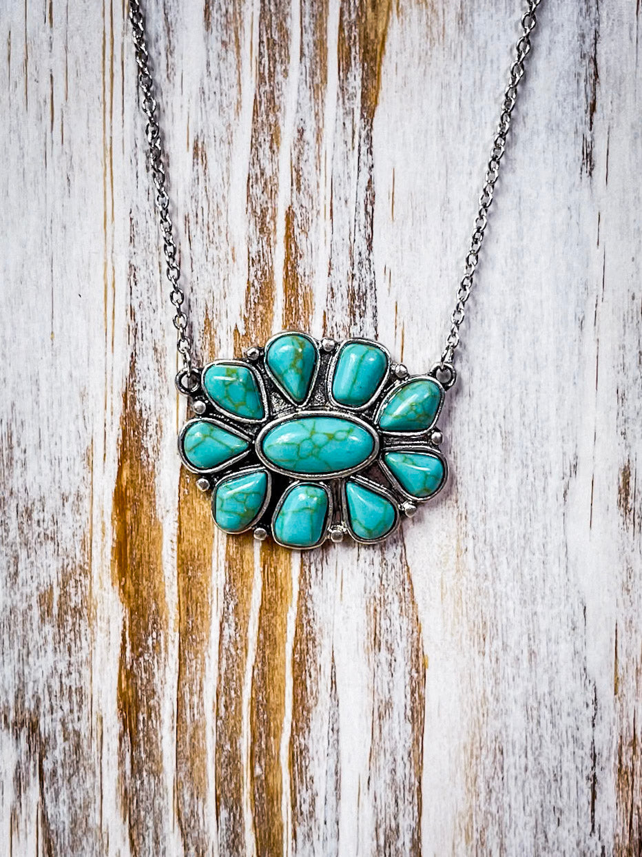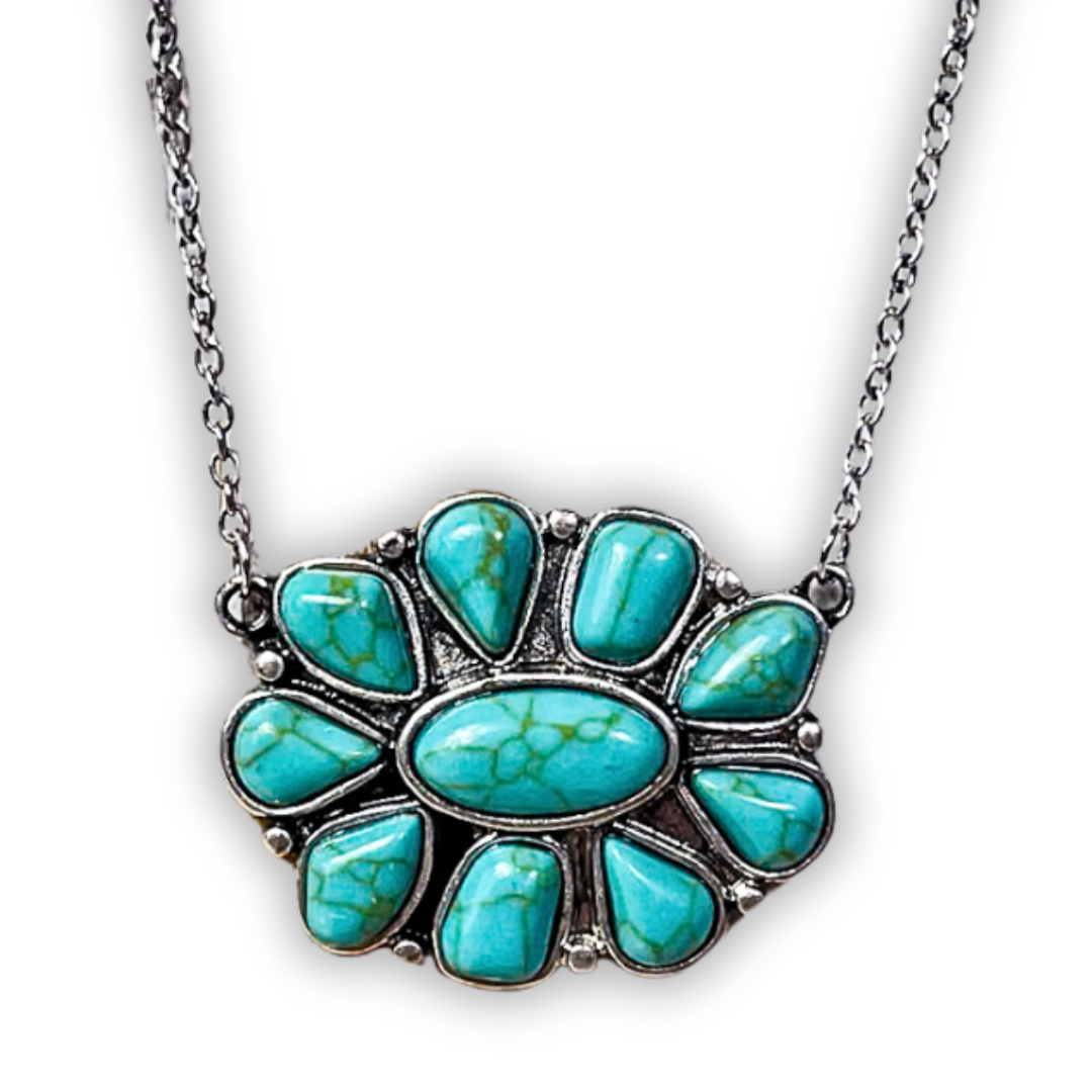 Lareda Round Concho Pendant with Aqua Stone Fashion Necklace