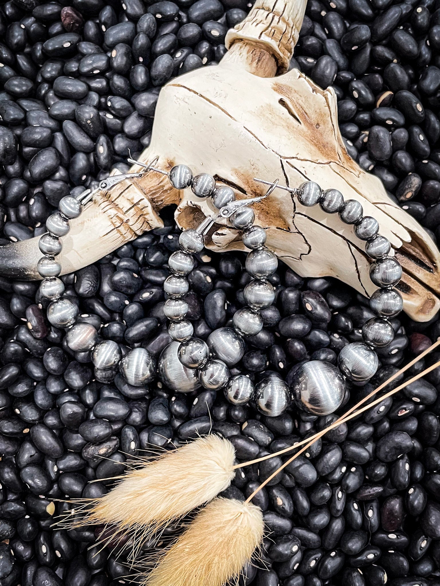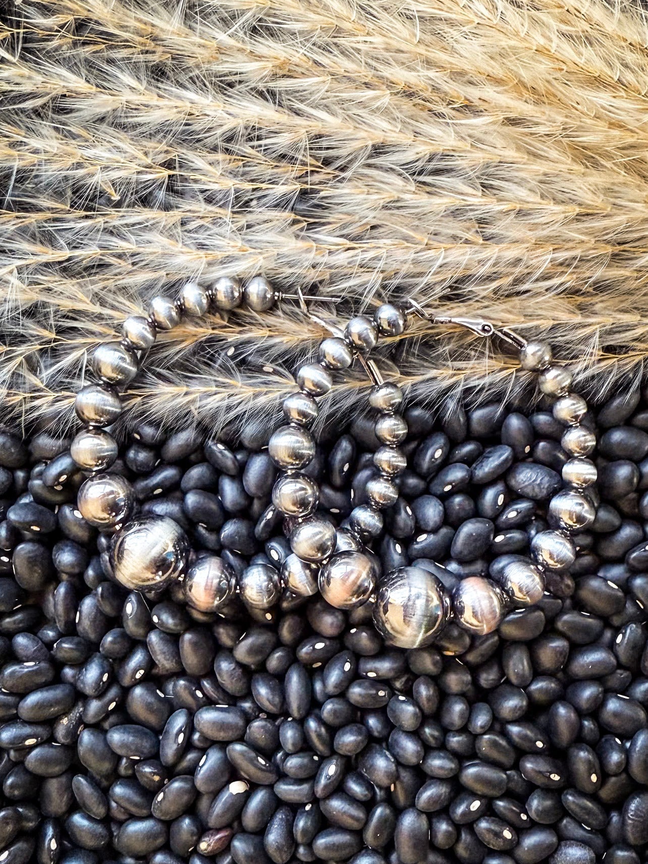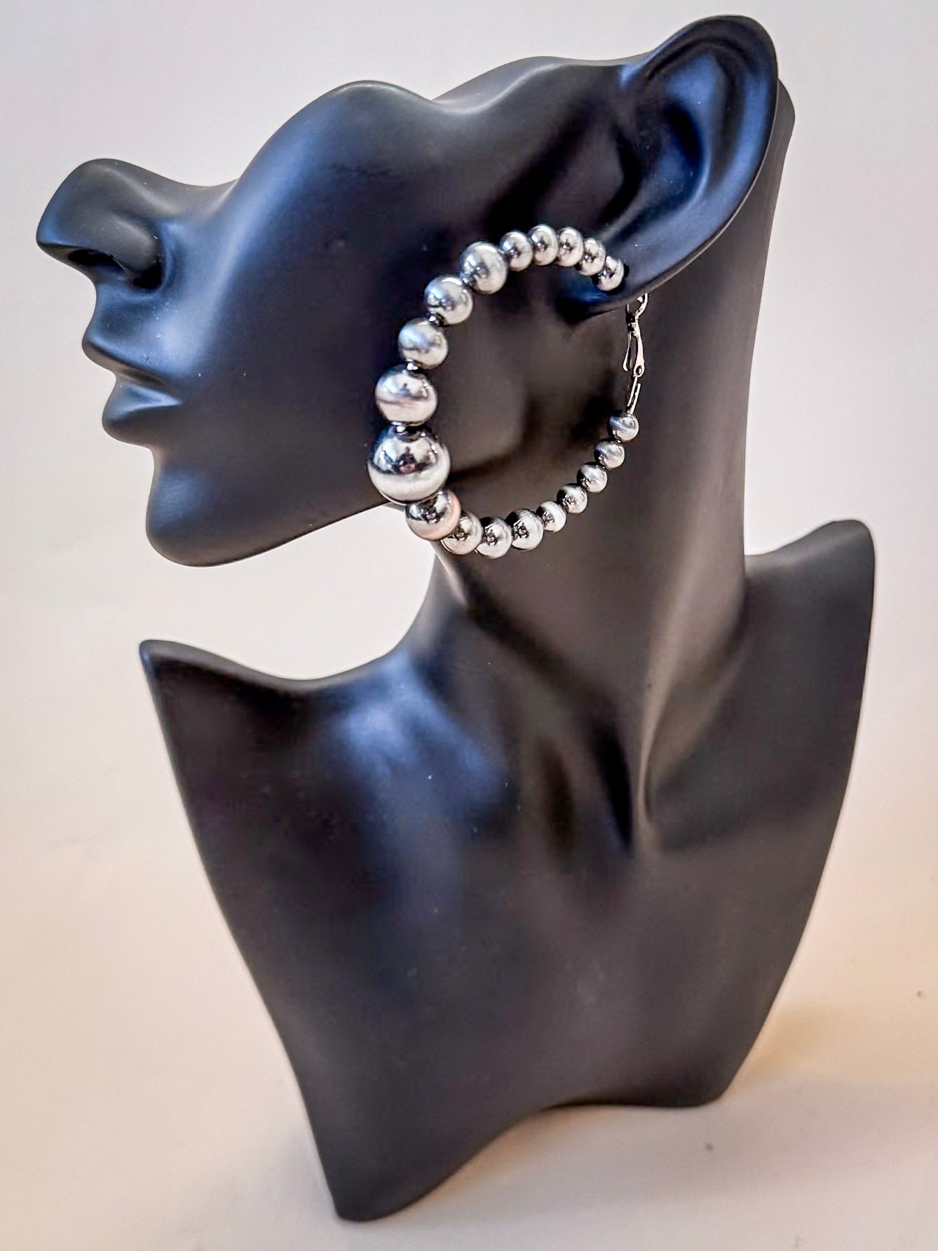 Vera Navajo Style Pearl Fashion Hoops - Silver
