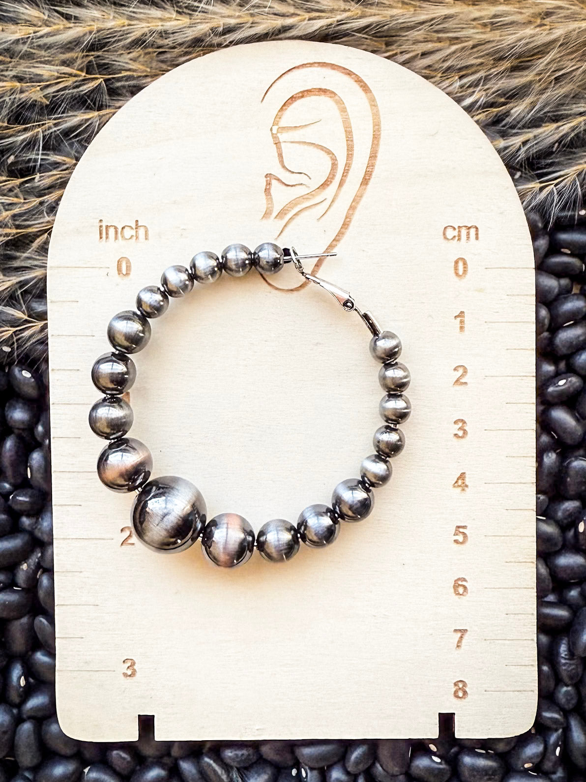 Augusta Beaded Fashion Hoop Earrings - Gray