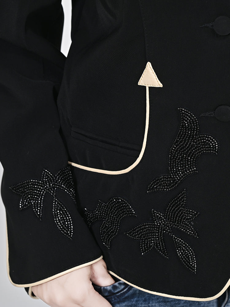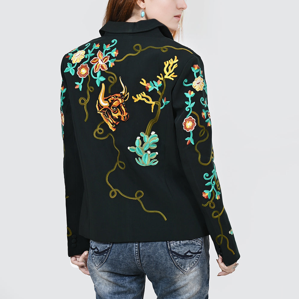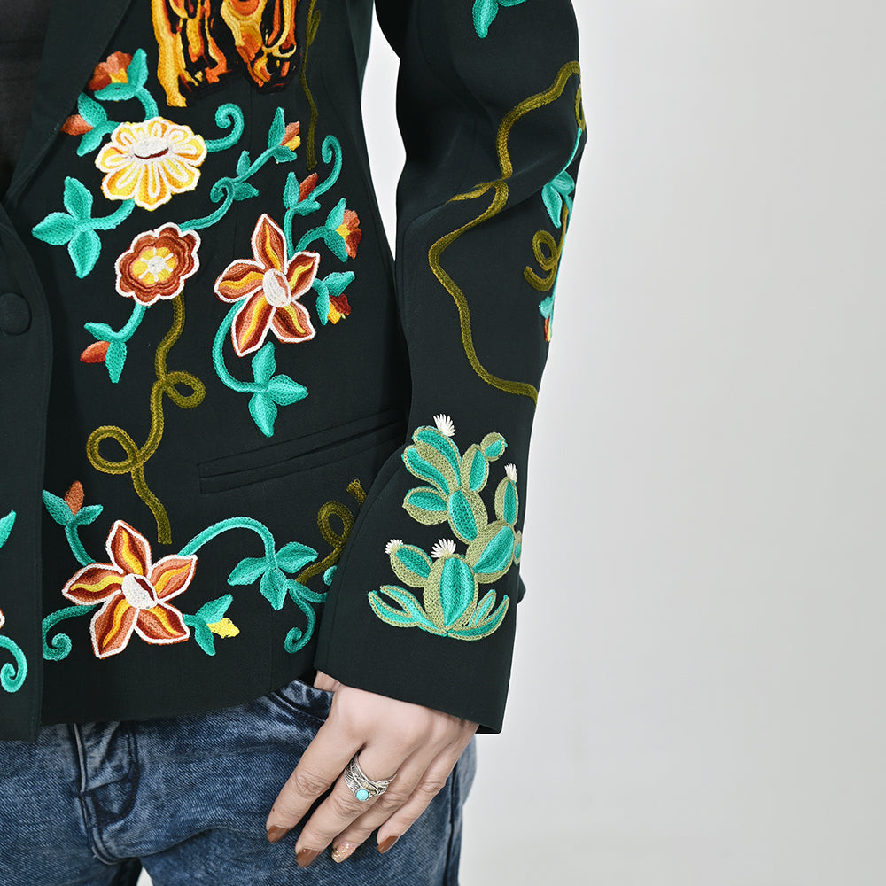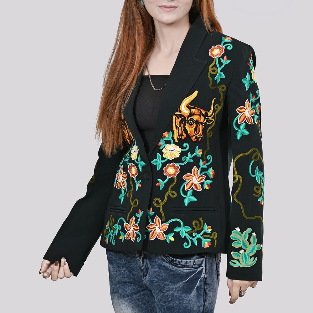 American Darling Genuine Suede Embroidered leather Blazer ladies Girl Black
