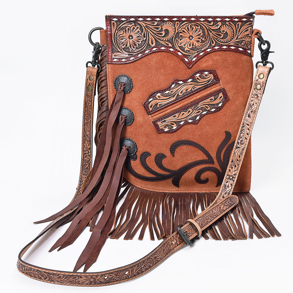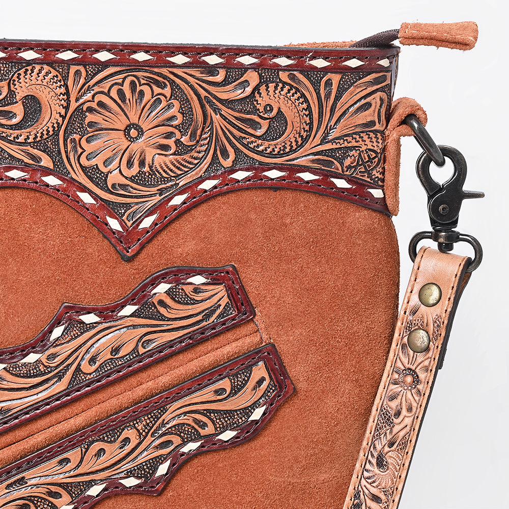 American Darling Women's Chaps Bag Western Hand Tooled Genuine Leather Handbag