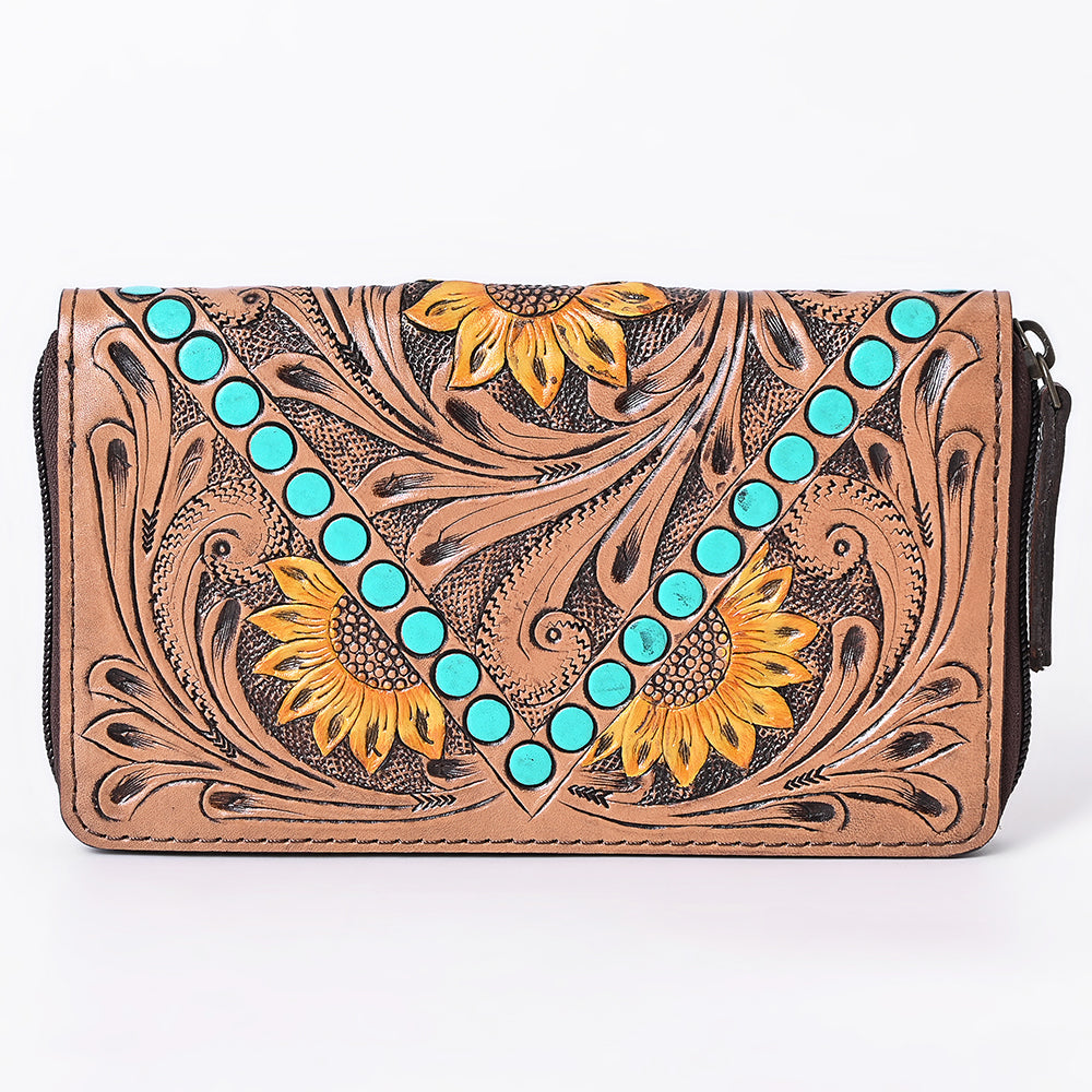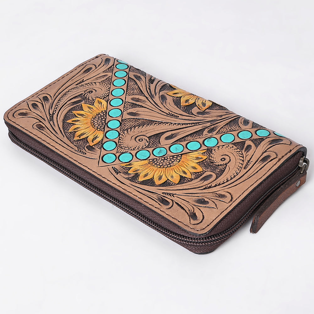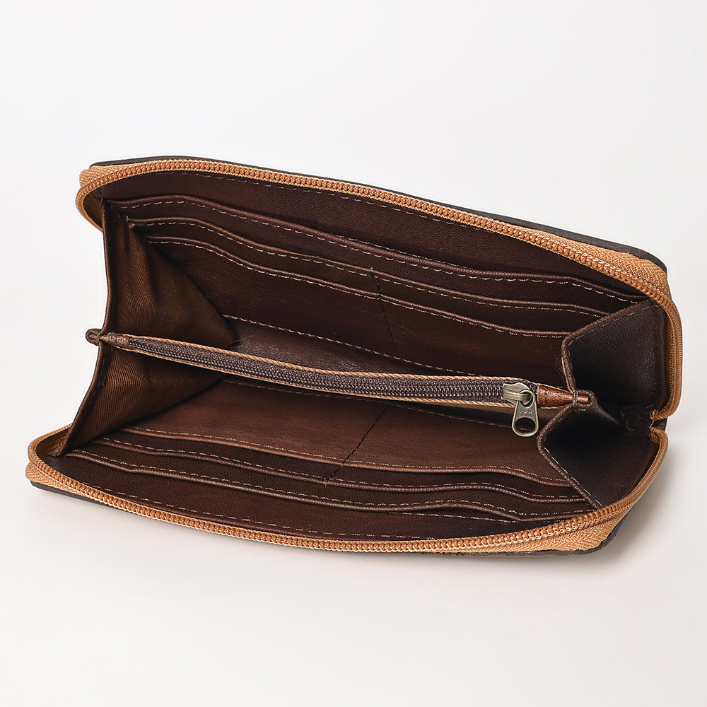 OHLAY Wallet Hand Tooled Genuine Leather Women Bag Western Handbag Purse