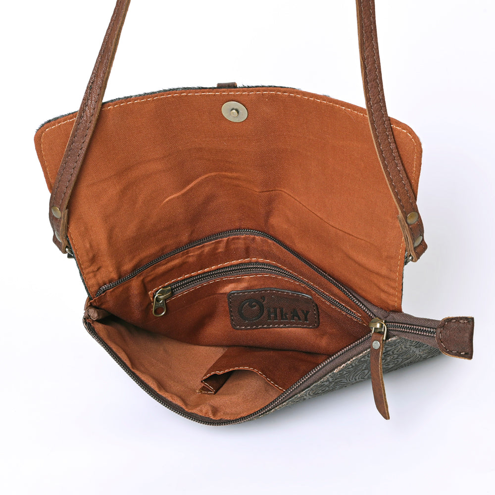 OHLAY WALLET Hand Tooled Hair-on Genuine Leather women bag western handbag purse
