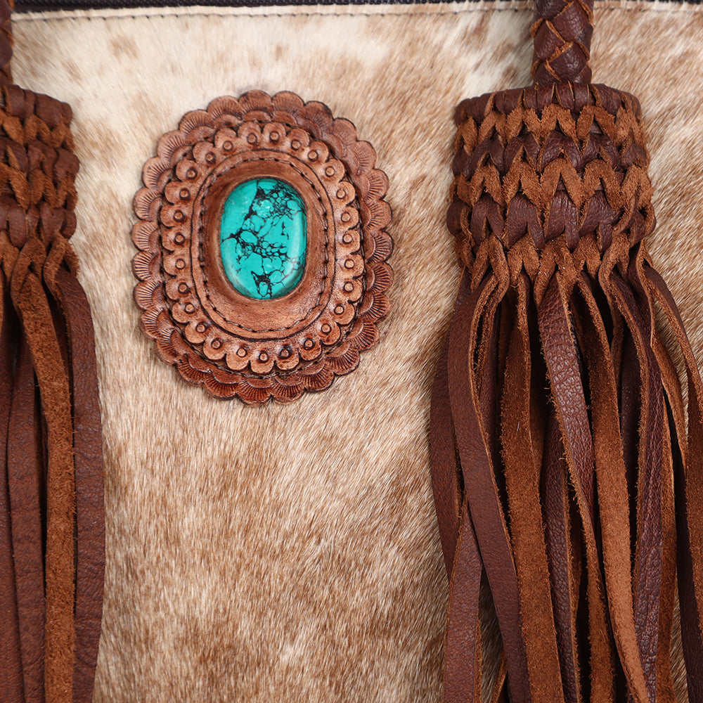 American Darling ADBGS117TAWFRNG Large Crossbody Hair On Genuine Leather Women Bag Western Handbag Purse
