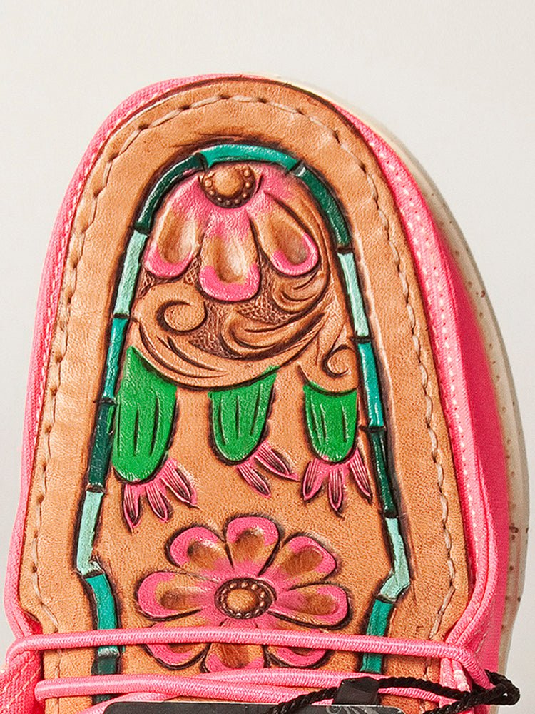 American Darling ADFT133PK12 Hand tooled carved genuine leather trim lightweight shoe footwear slip on