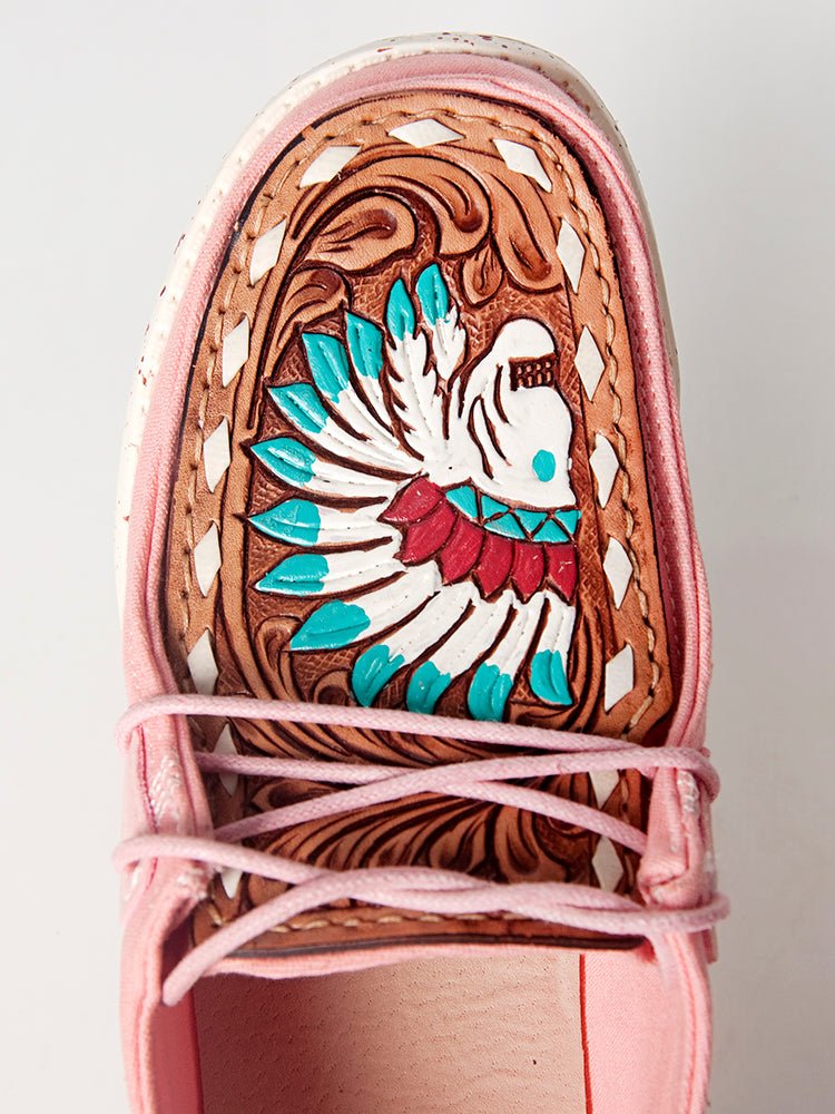 American Darling ADFT133PK10 Hand tooled carved genuine leather trim lightweight shoe footwear slip on