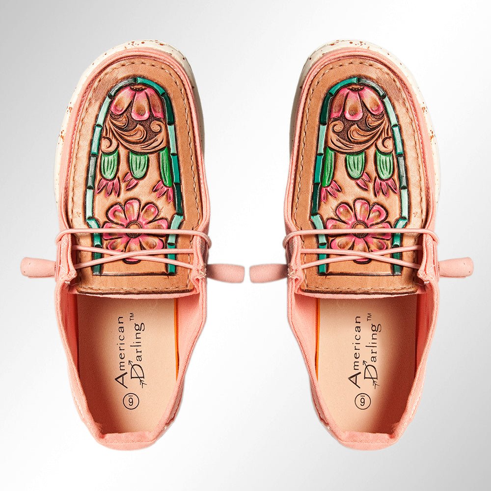 American Darling ADFT133PK9 Hand tooled carved genuine leather trim lightweight shoe footwear slip on